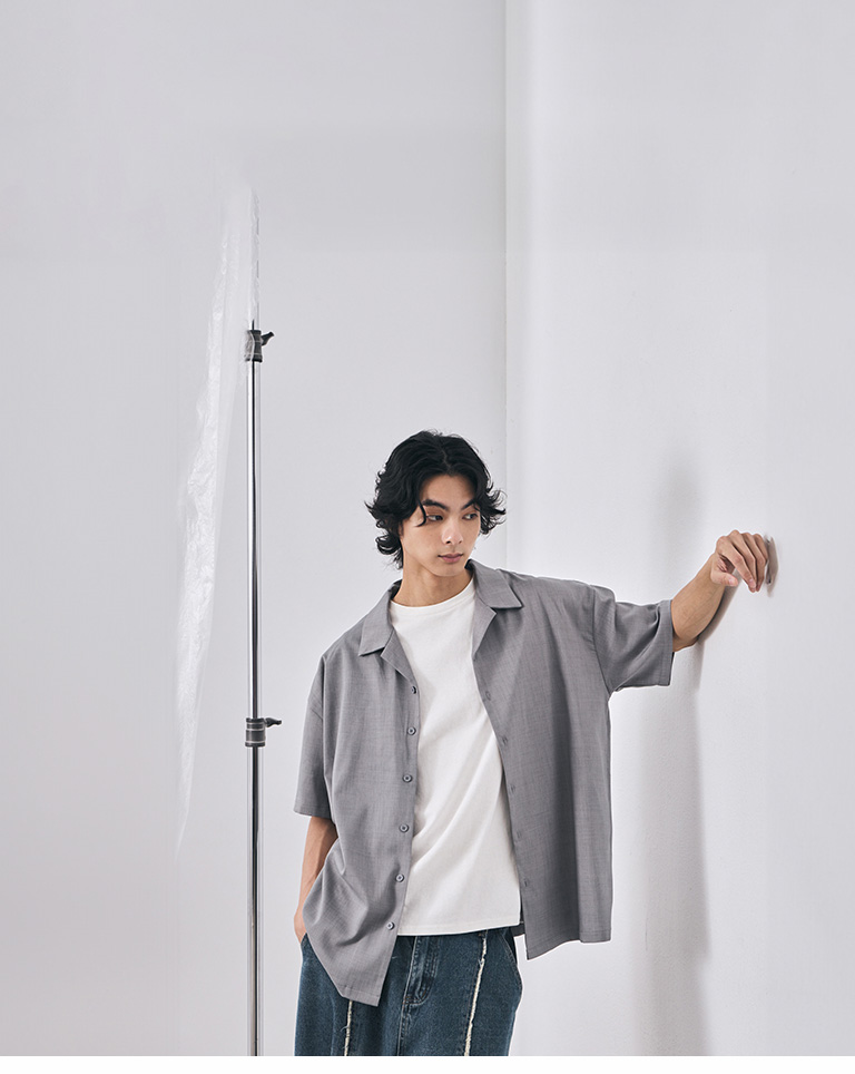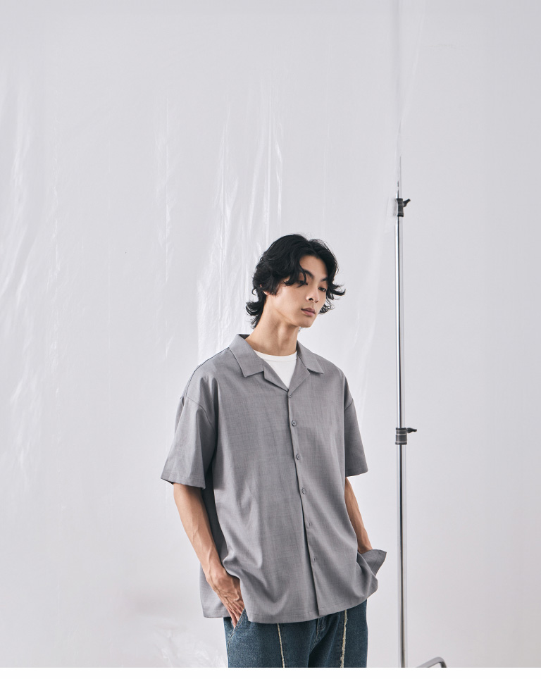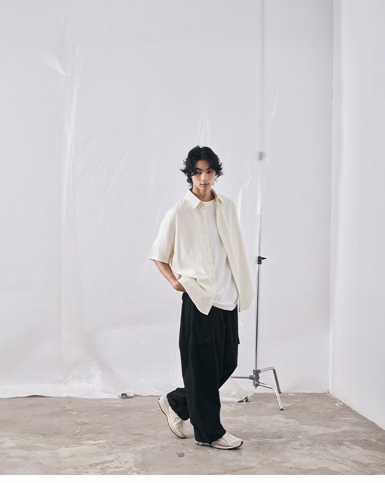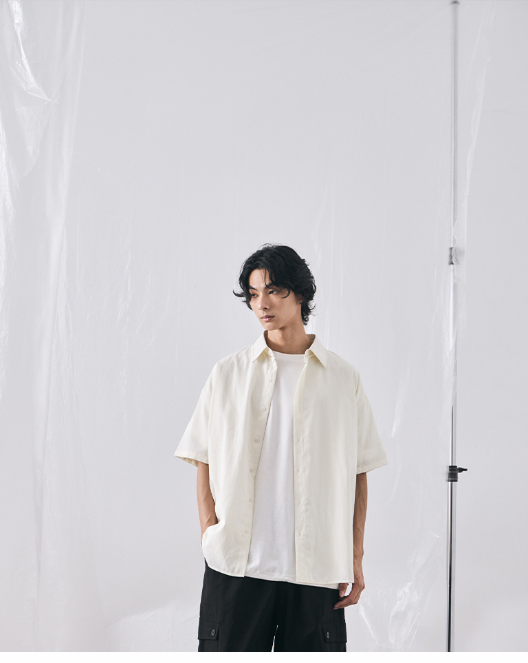 男裝 素面棉麻古巴領襯衫 兩色售M/L/XL