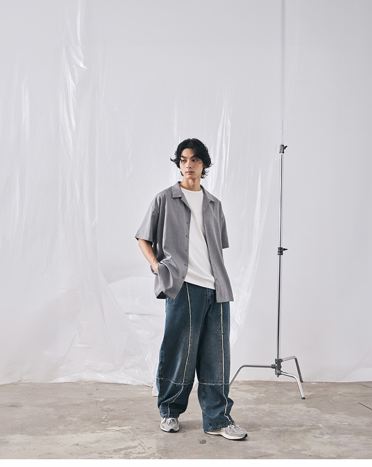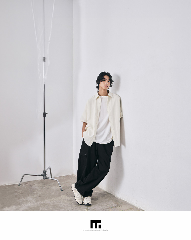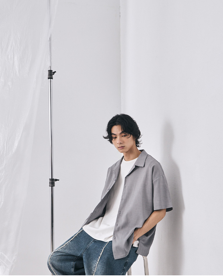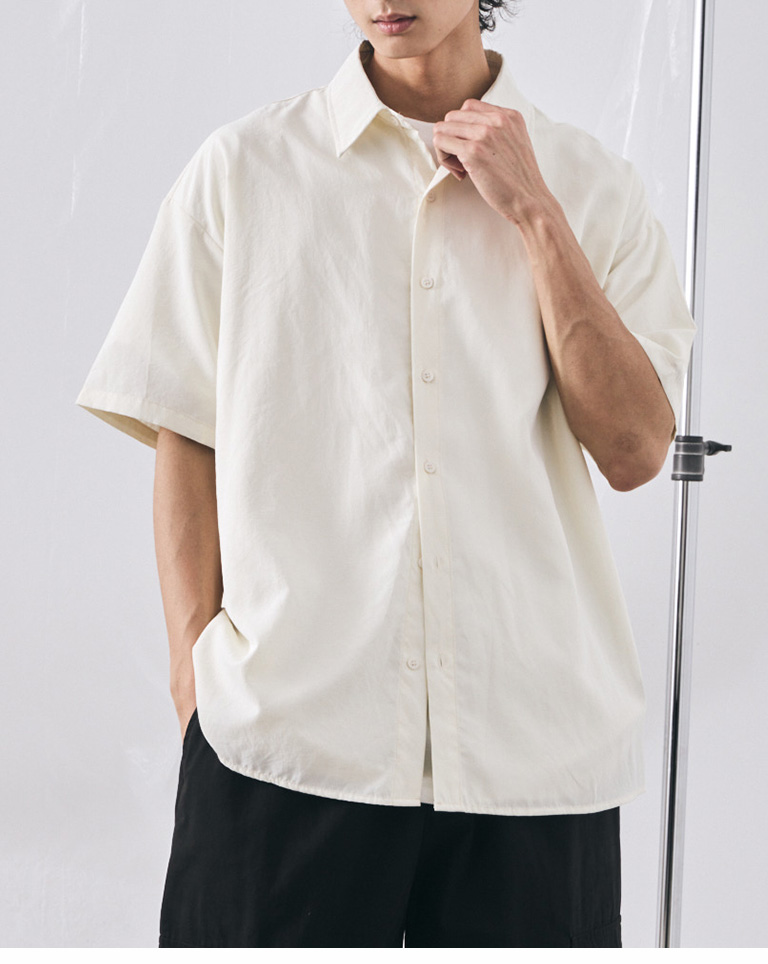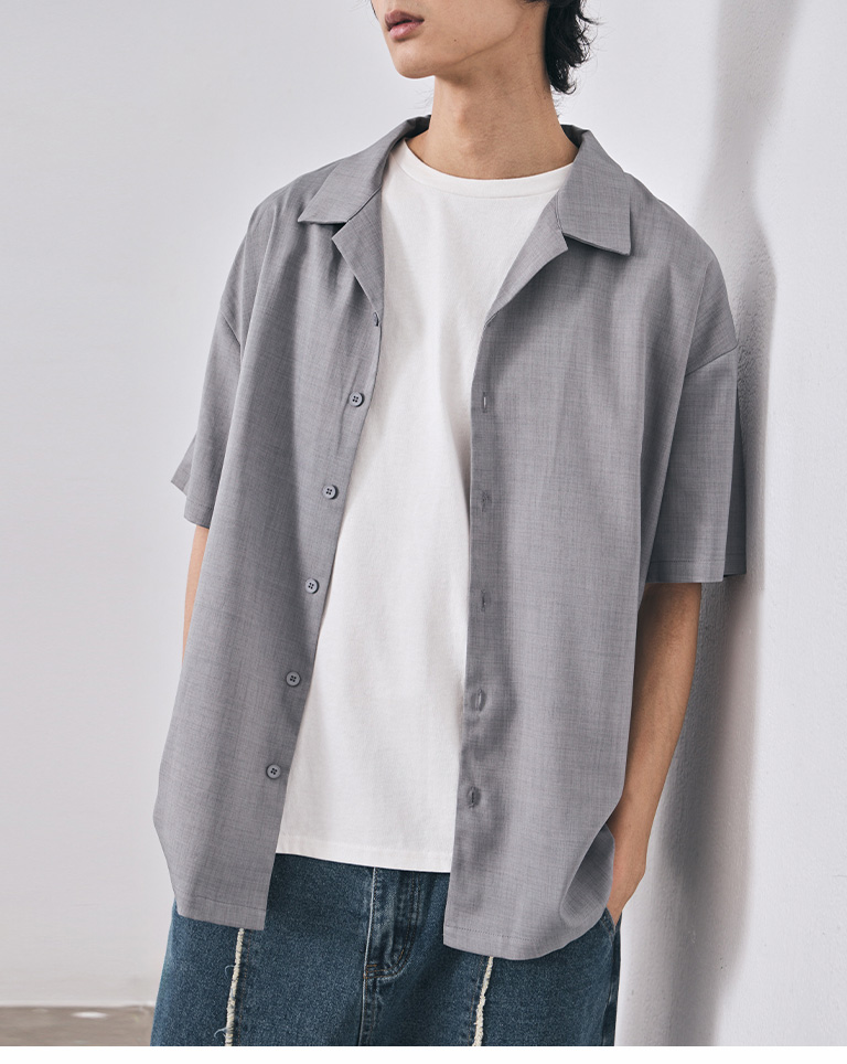 男裝 素面棉麻古巴領襯衫 兩色售M/L/XL