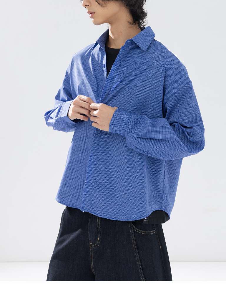 男裝 經典小格紋設計長袖襯衫M/L/XL