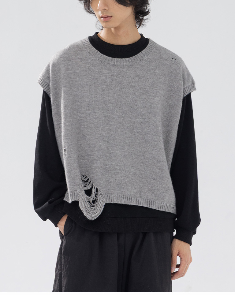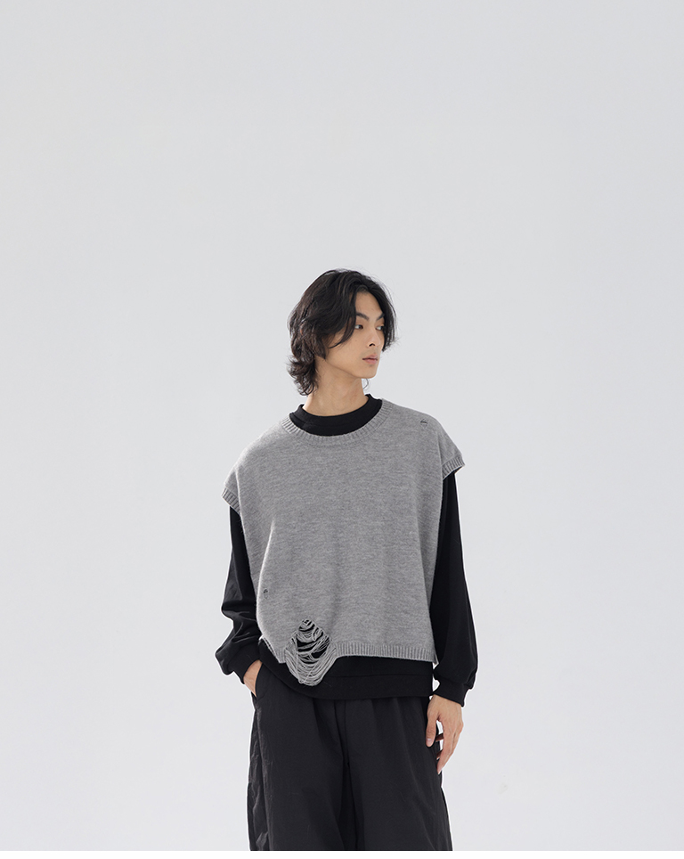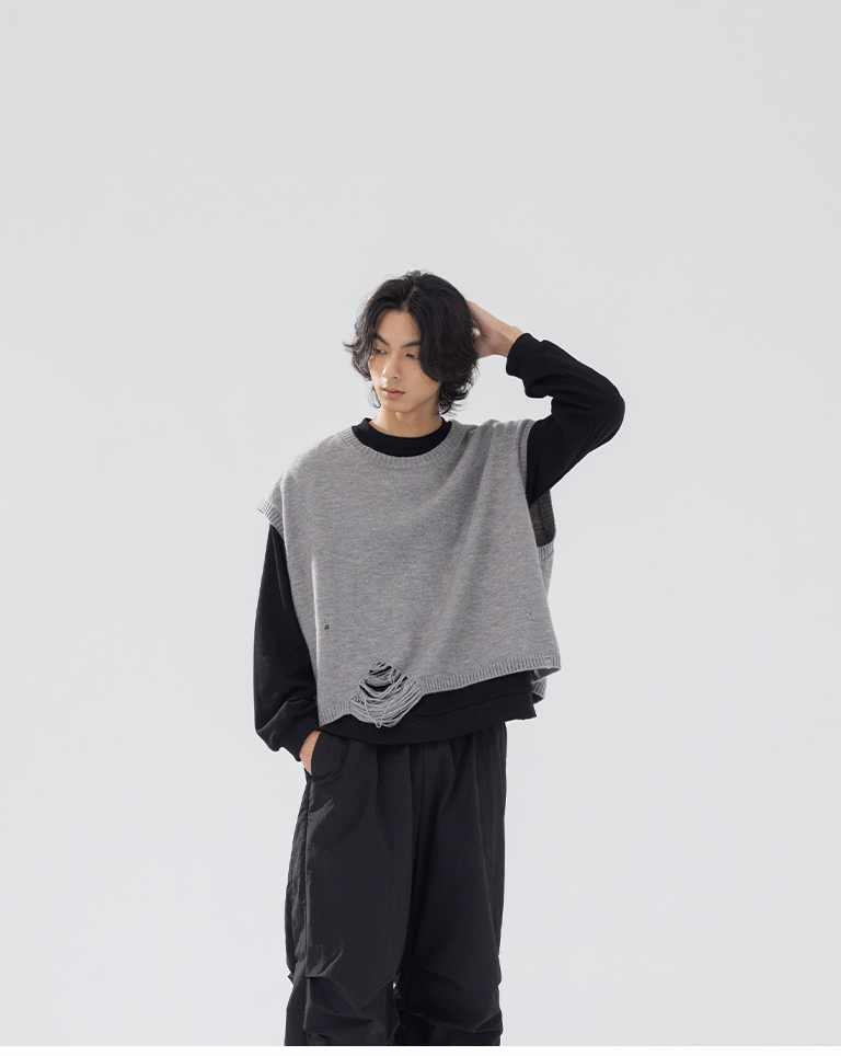 男裝 刷破設計短版針織背心