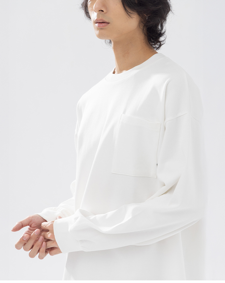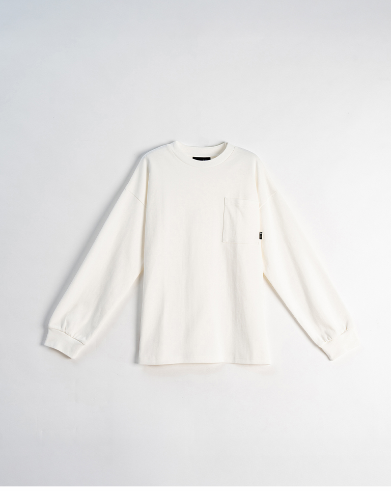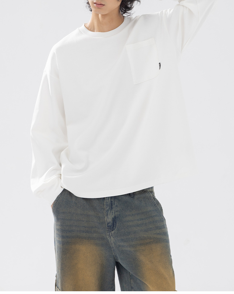 男裝 素面單口袋圓領長袖上衣
