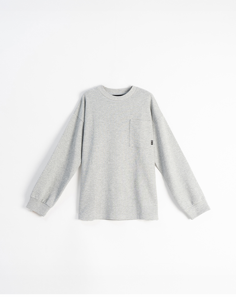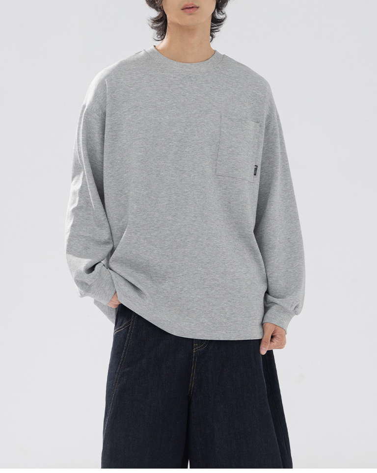 男裝 素面單口袋圓領長袖上衣-花灰 S-XL