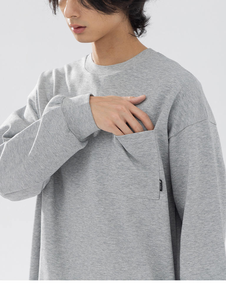 男裝 素面單口袋圓領長袖上衣