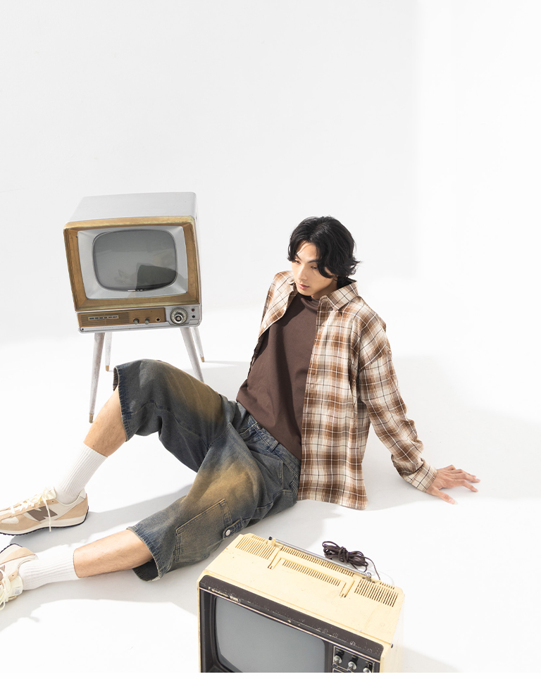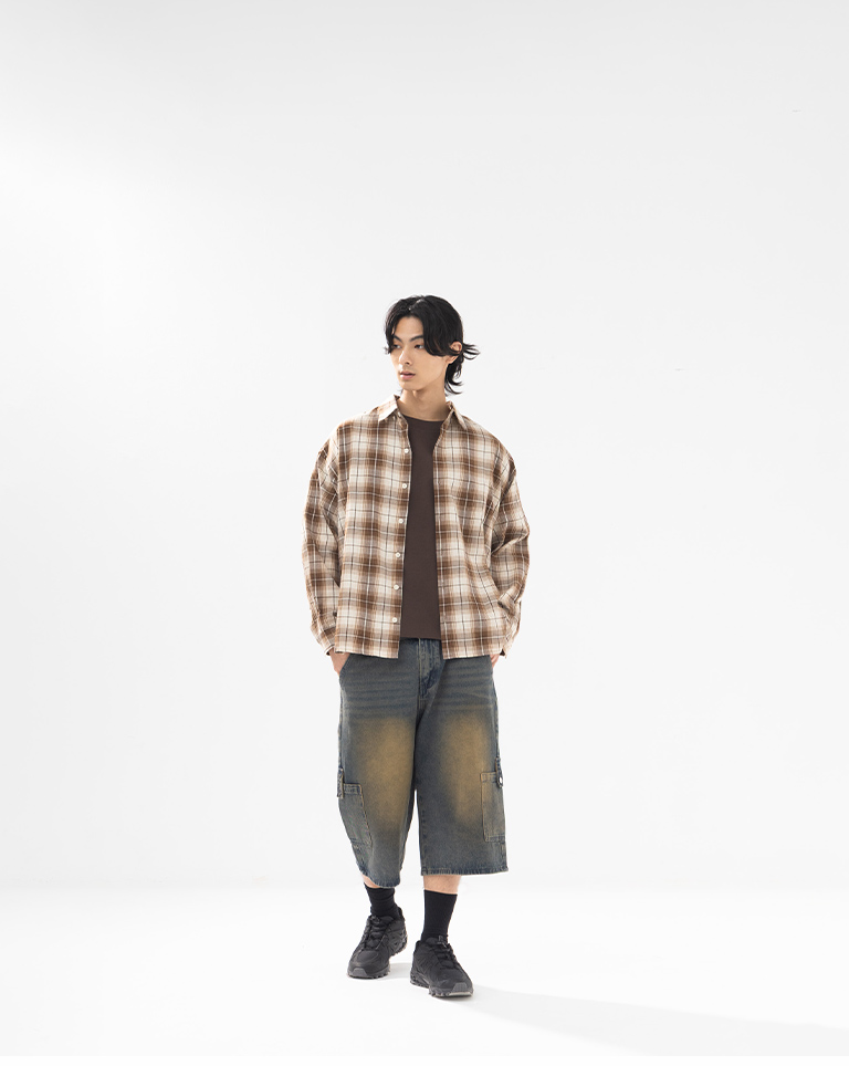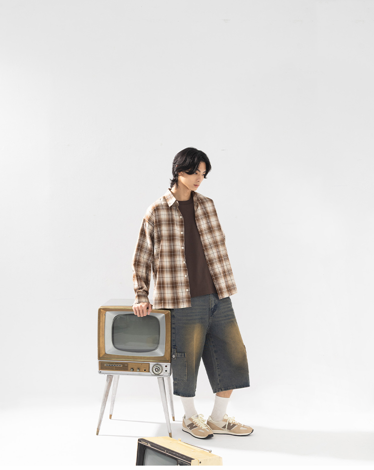 男裝 經典格紋設計寬版襯衫S//M/L/XL