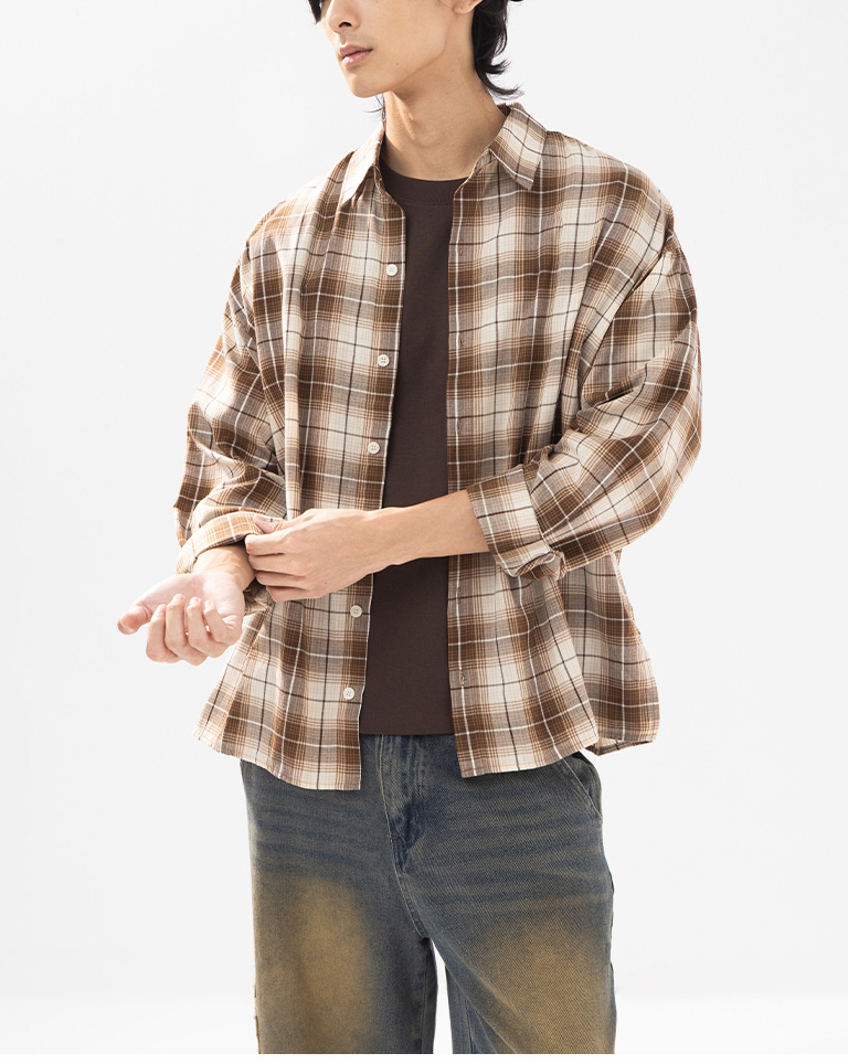 男裝 經典格紋設計寬版襯衫