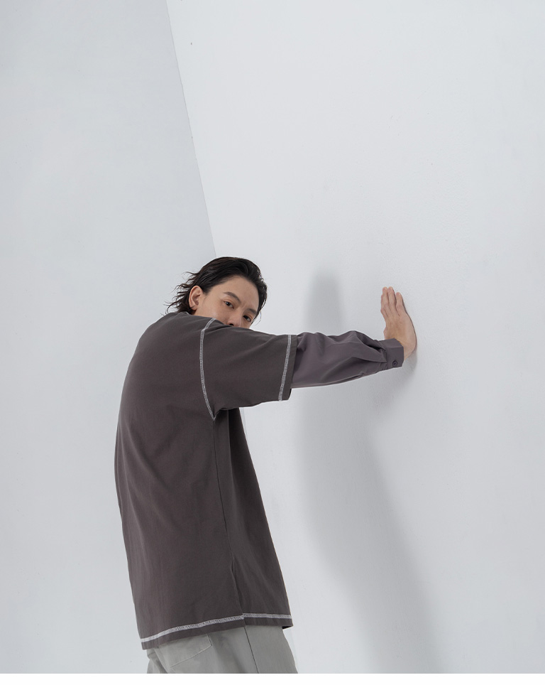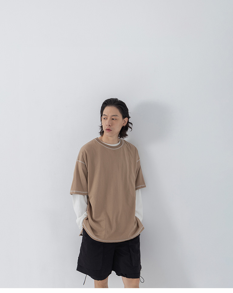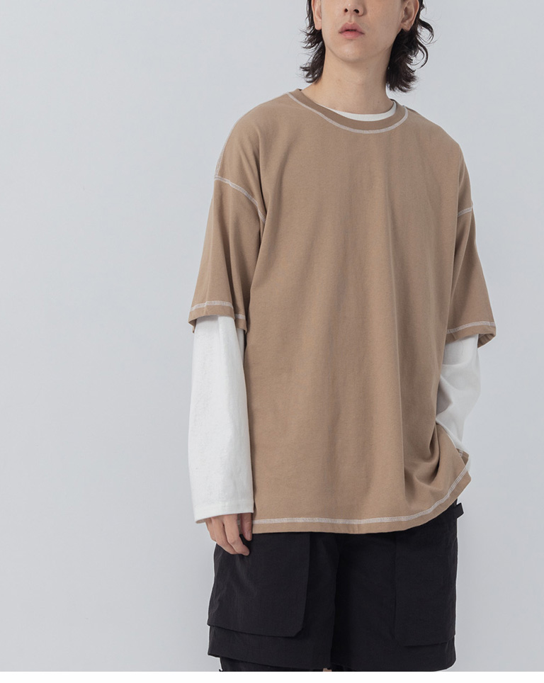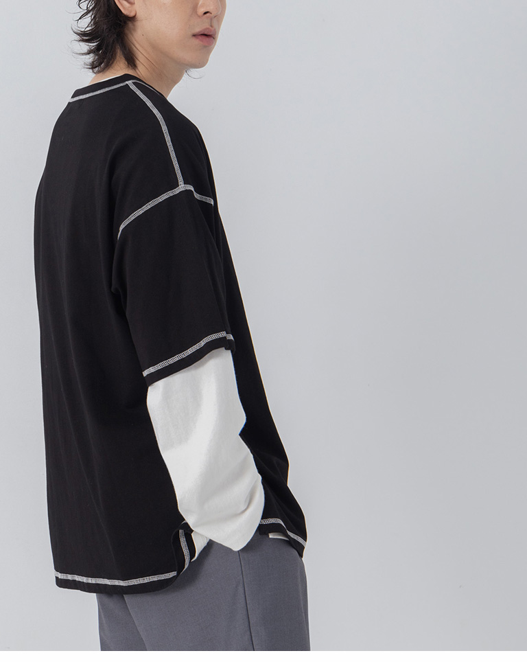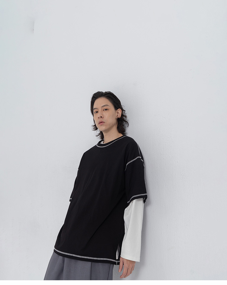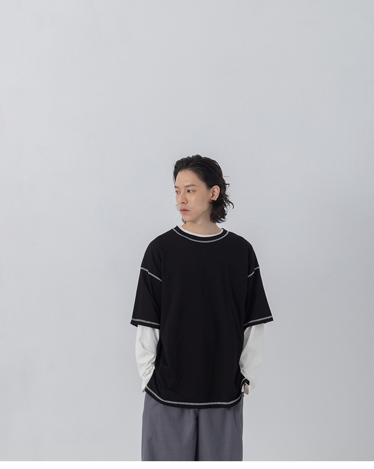 撞色壓線造型寬版上衣
