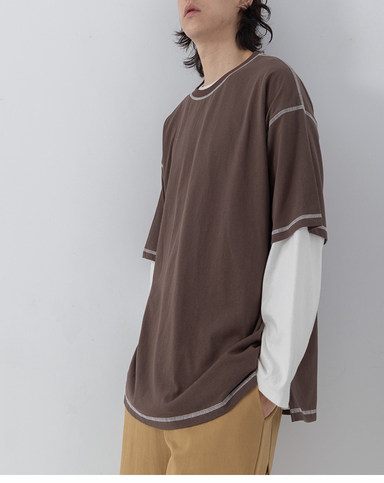 撞色壓線造型寬版上衣 四色售 S/M/L/XL