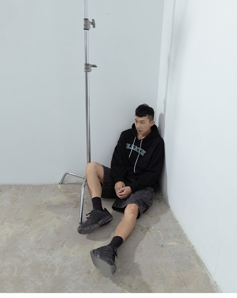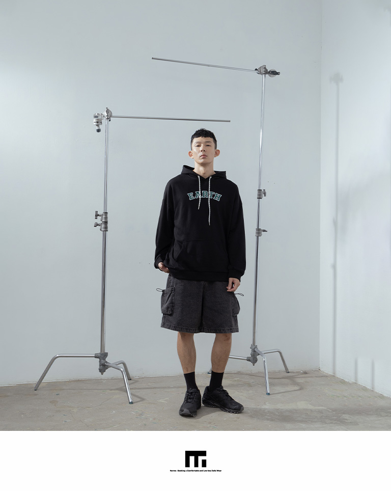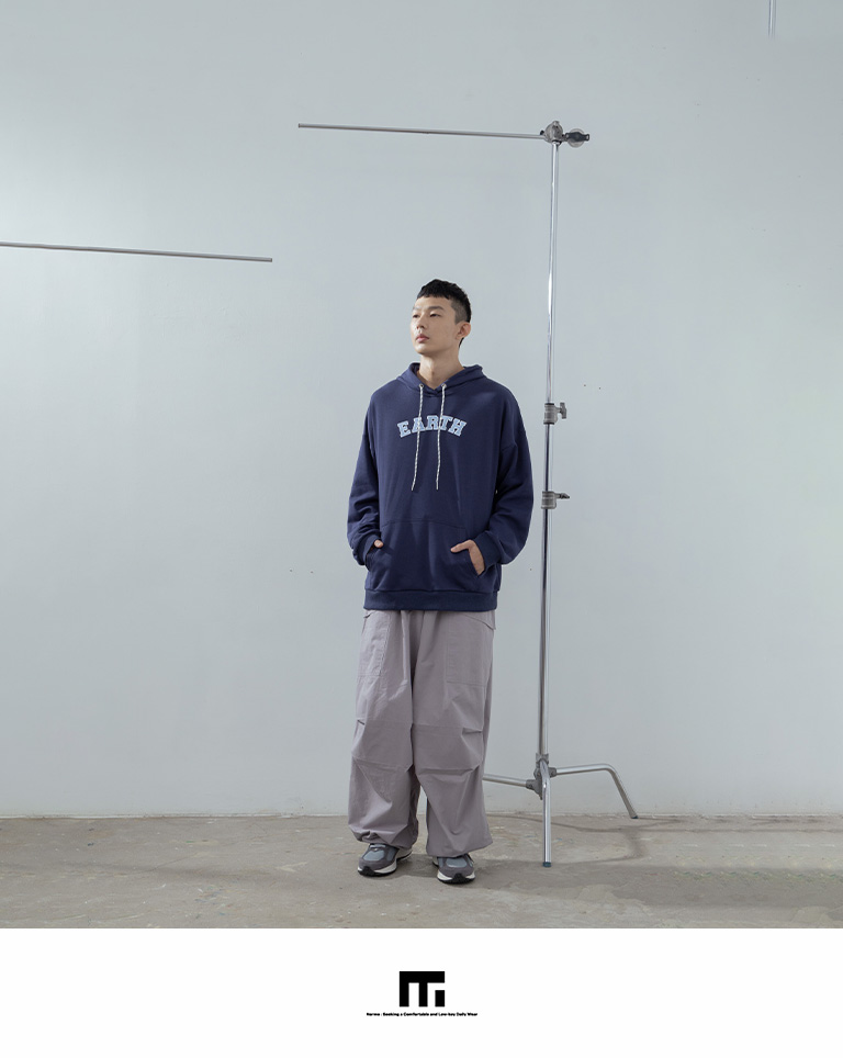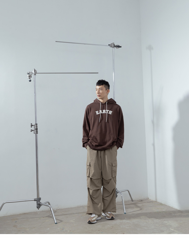 EARTH繡字與斜紋抽繩 增添穿搭亮點