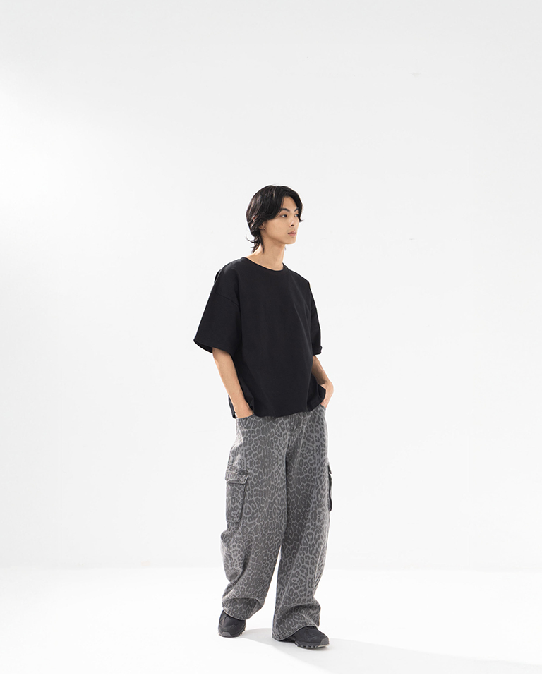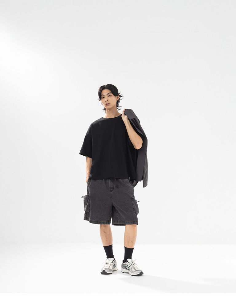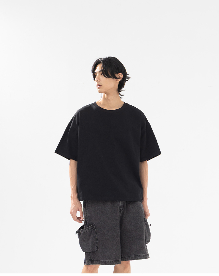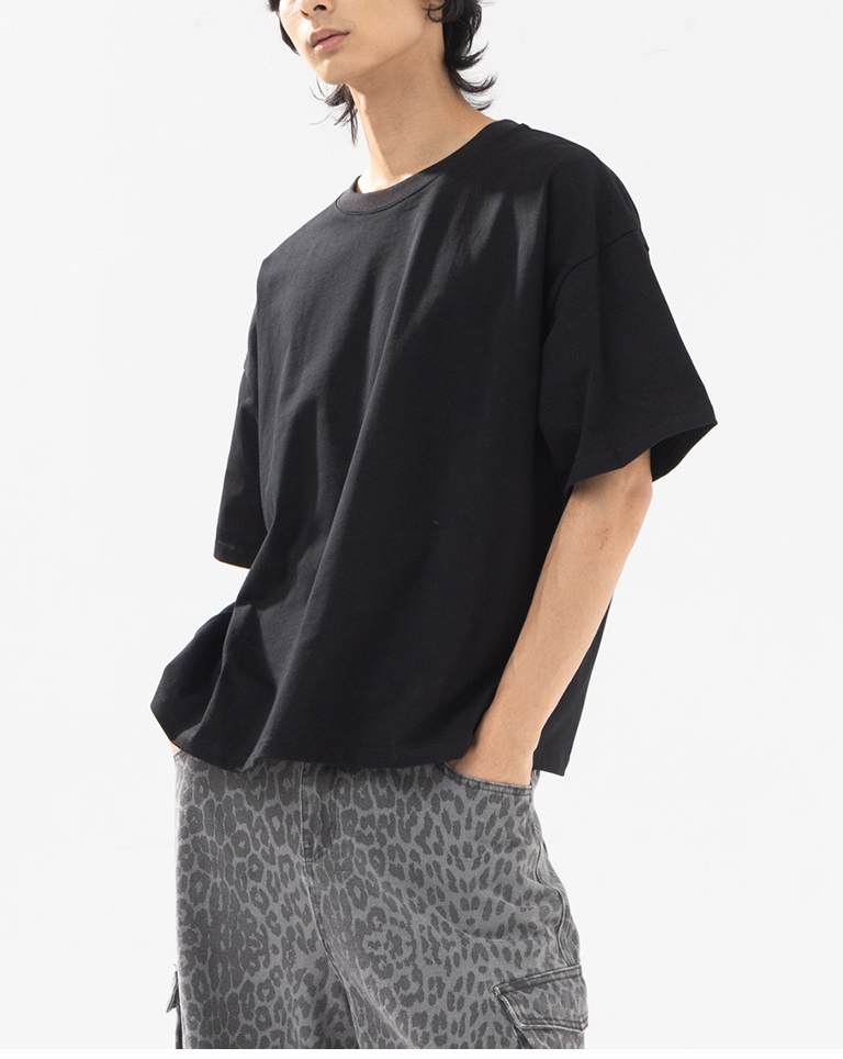 男裝 厚磅寬短版設計BOXY上衣-黑 S-XL