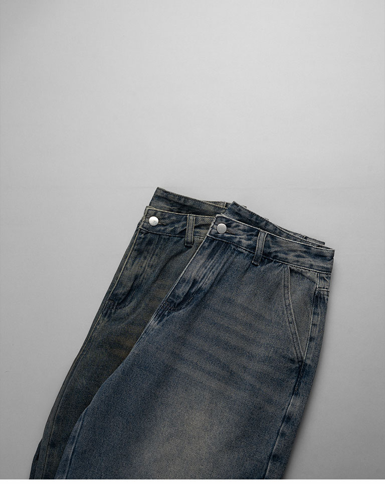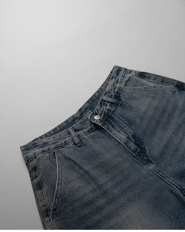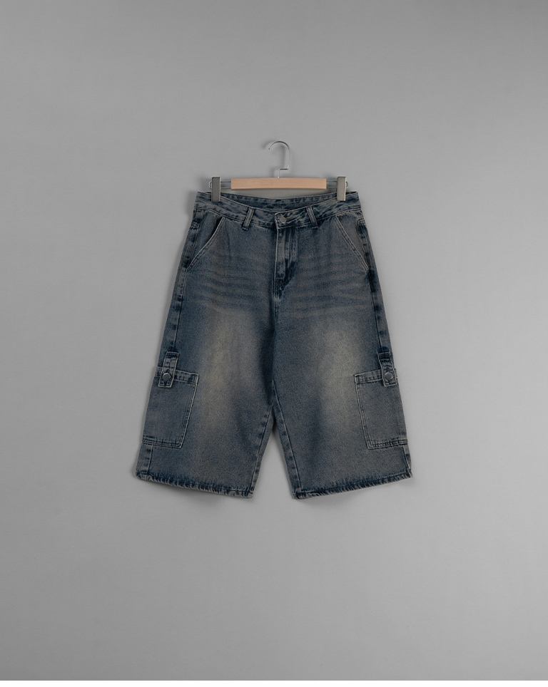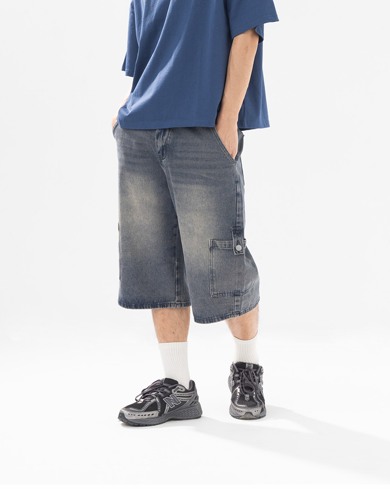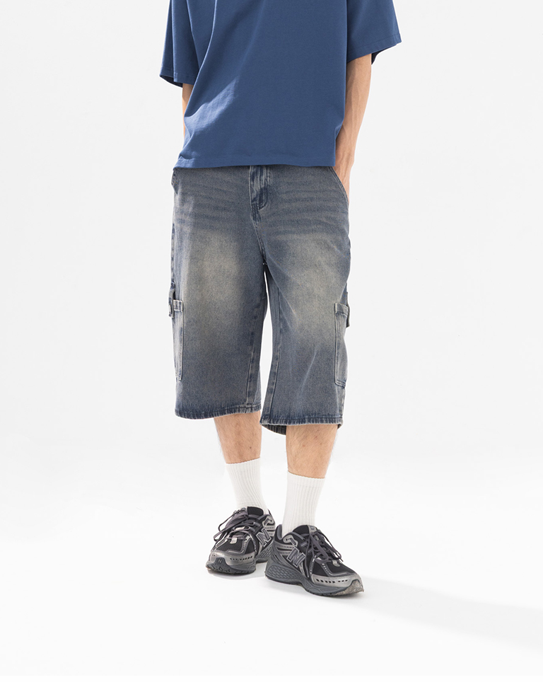 男裝 復古水洗造型牛仔七分褲-淺藍 S-XL