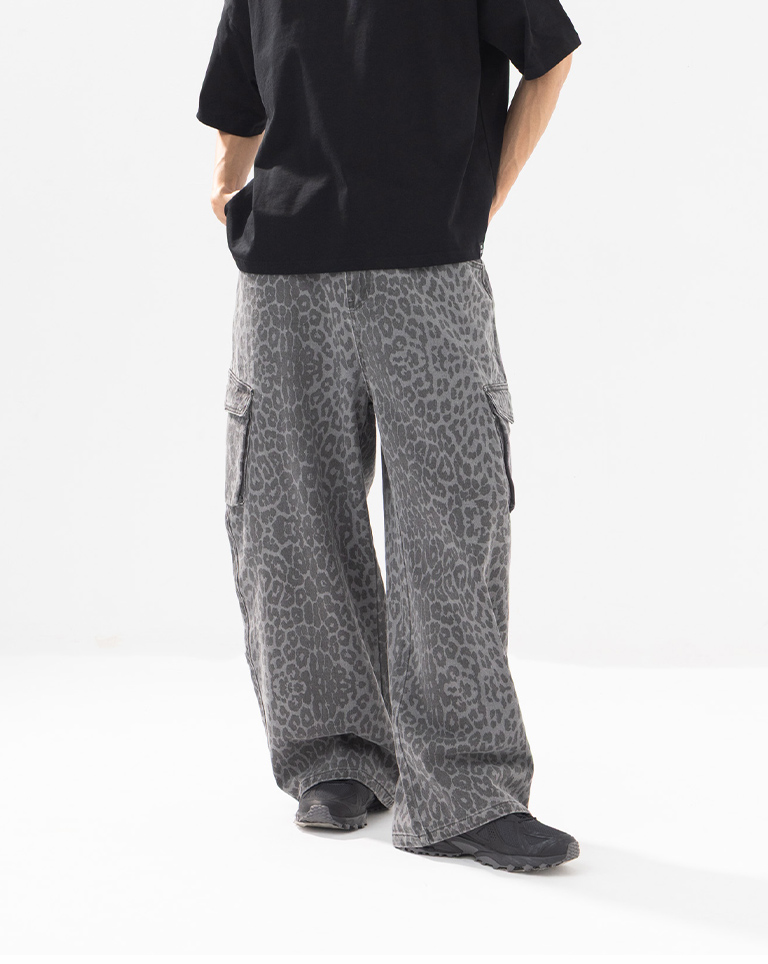 男裝 豹紋造型大口袋牛仔長褲 S-XL