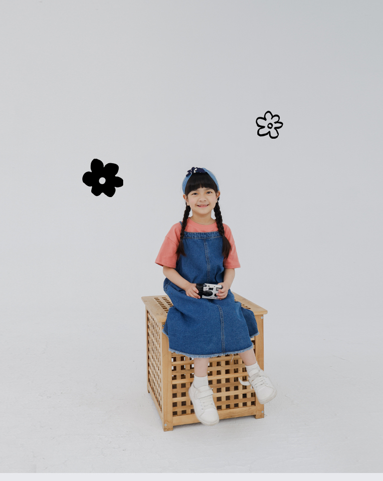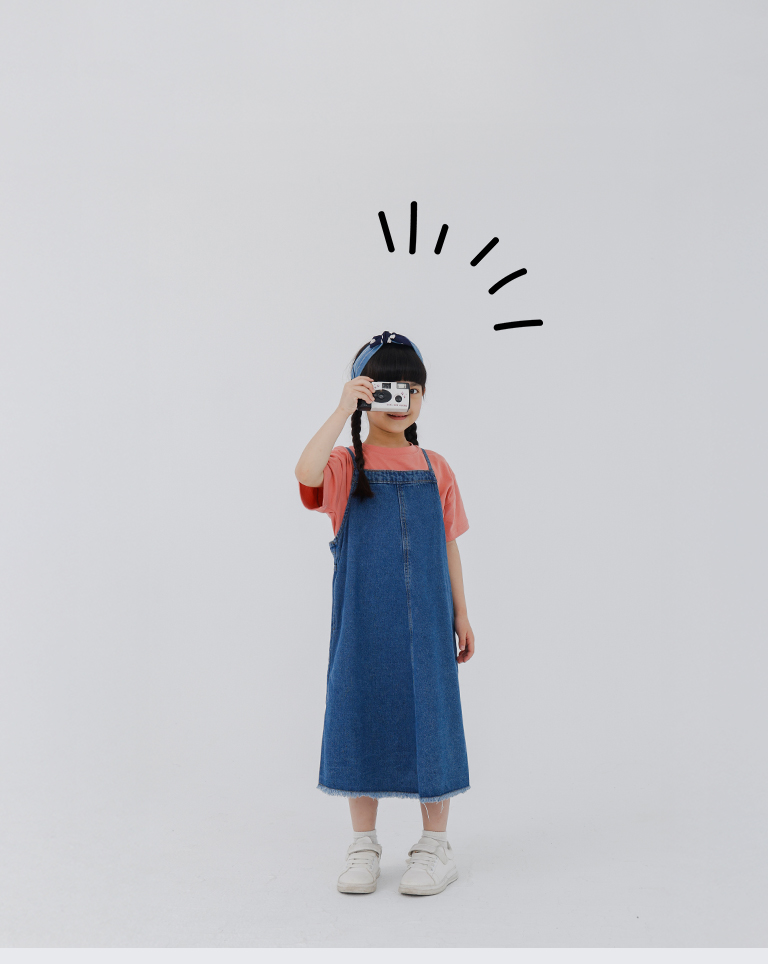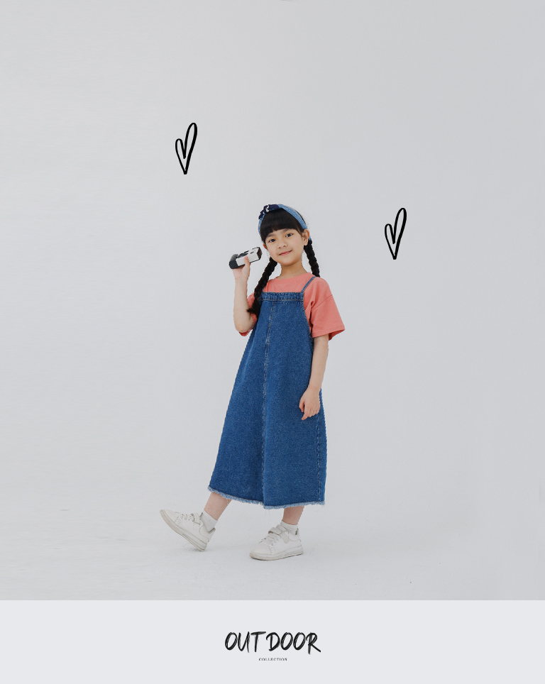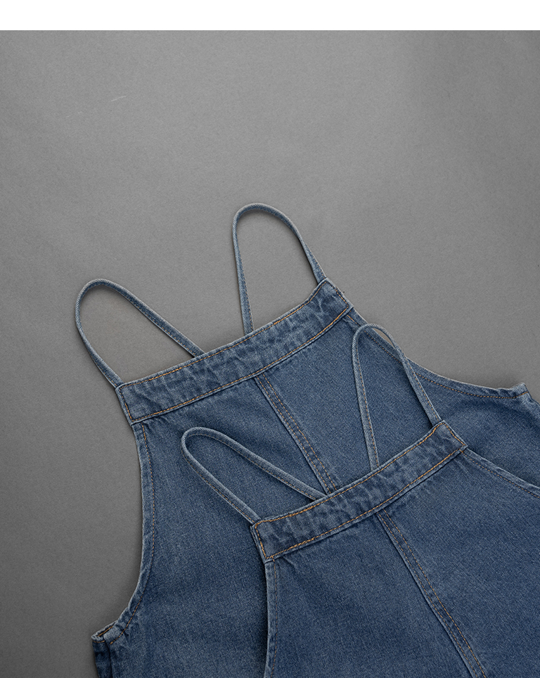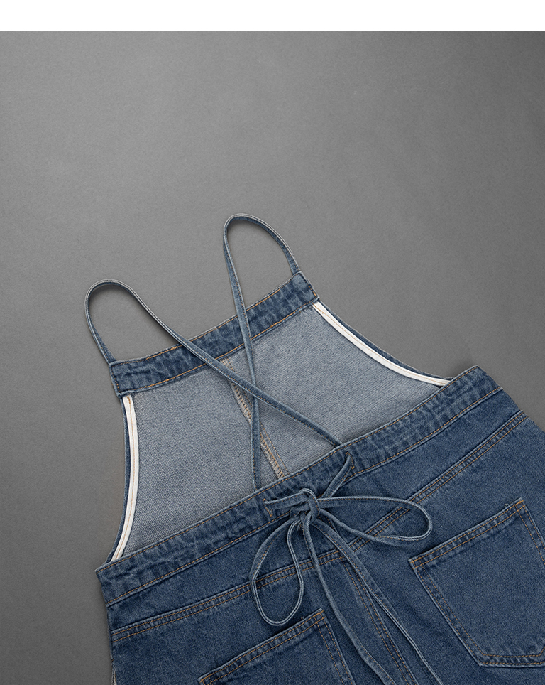 童裝 抽鬚綁帶牛仔吊帶洋裝