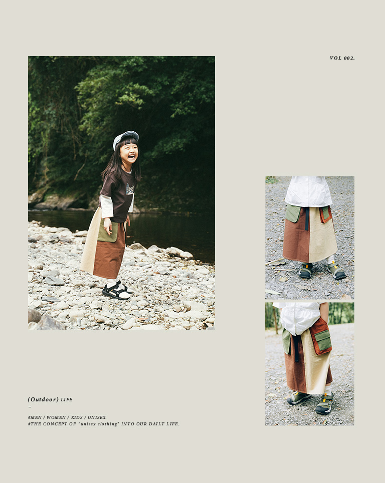 童裝 親子系列 撞色立體口袋設計調節長裙
