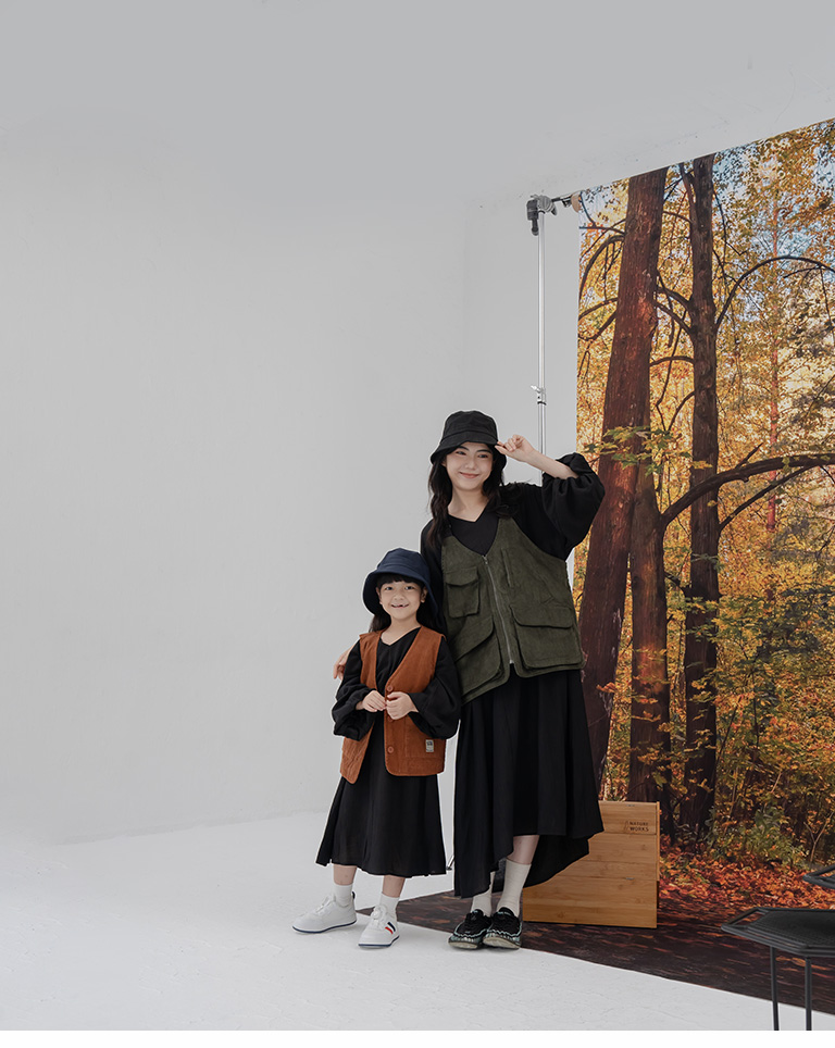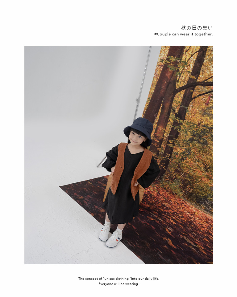 童裝 親子系列 V領皺皺緹花澎袖洋裝