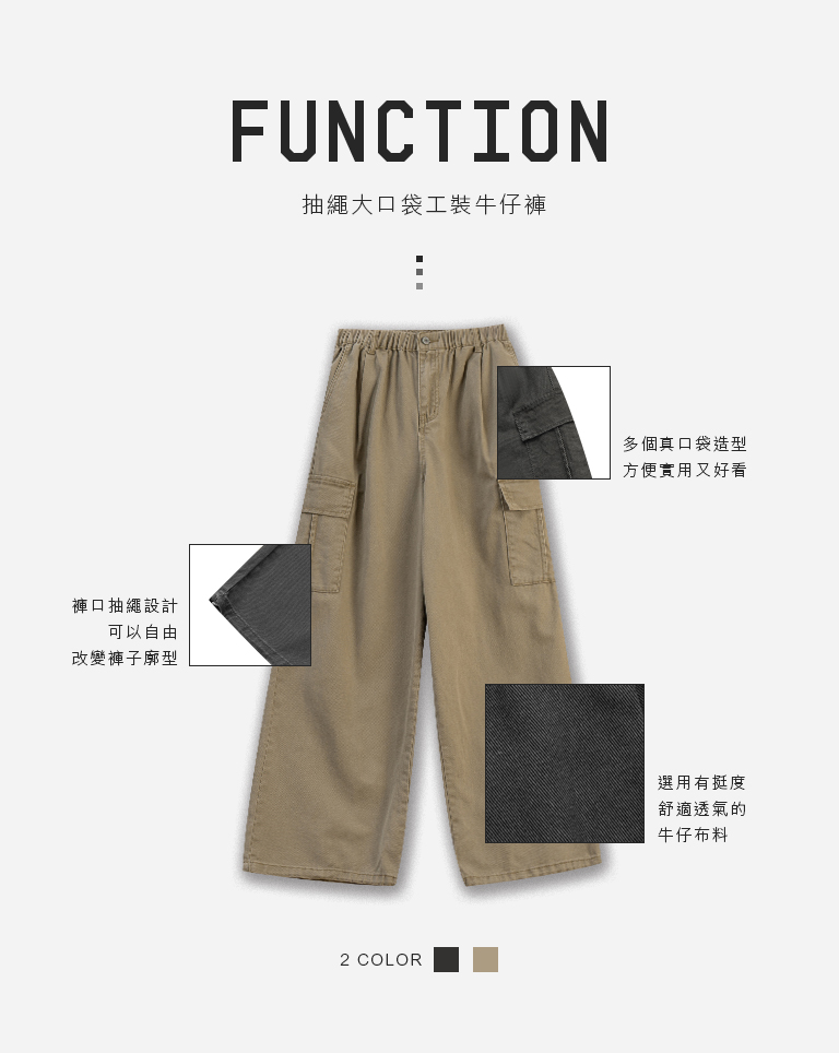抽繩大口袋工裝牛仔褲 兩色售 1/2/3