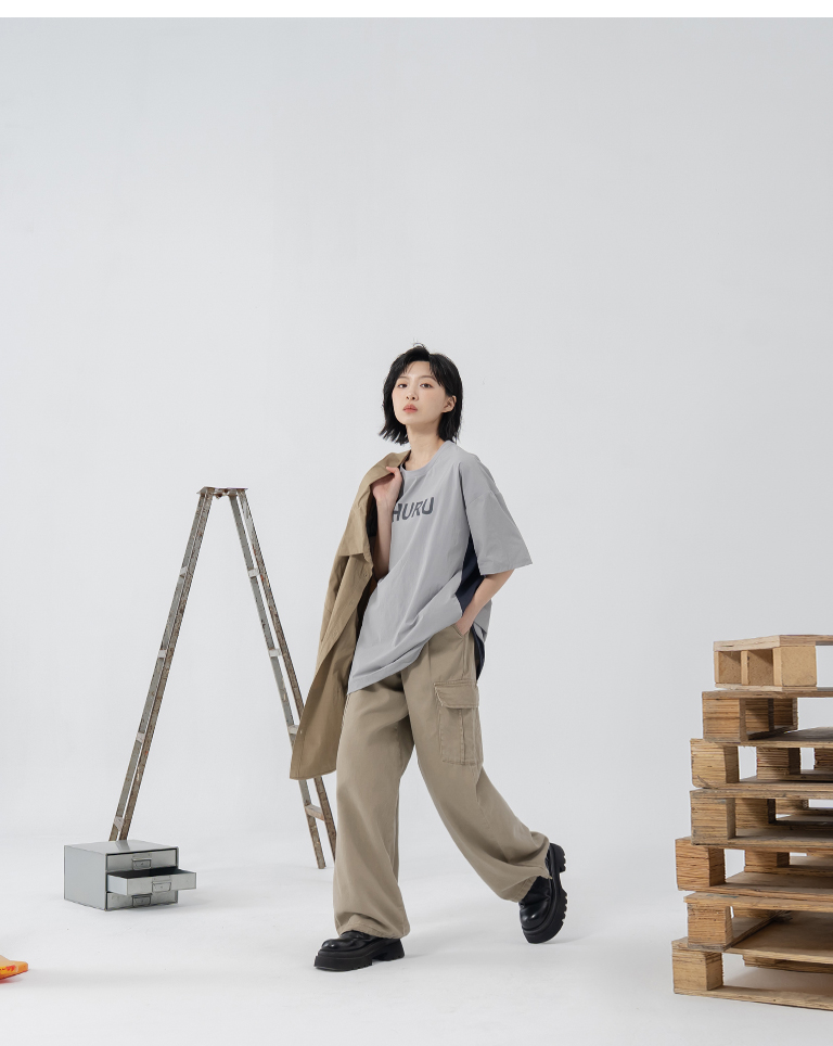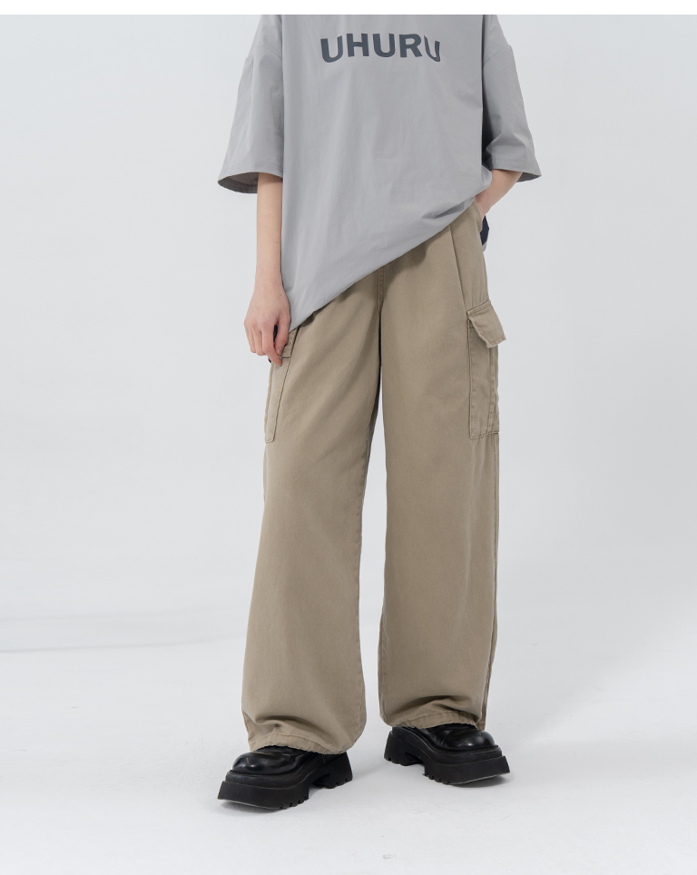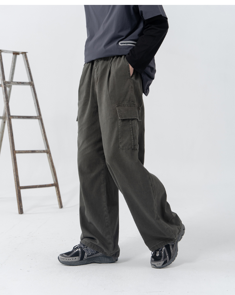 抽繩大口袋工裝牛仔褲