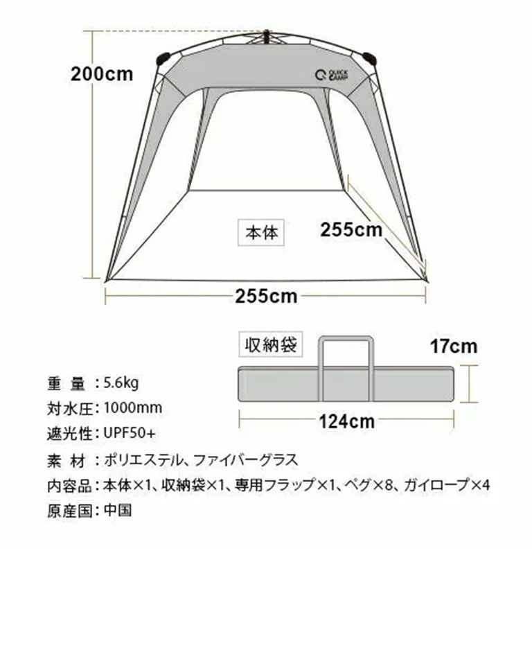 展開尺寸:約 255cm x 255cm x 200cm