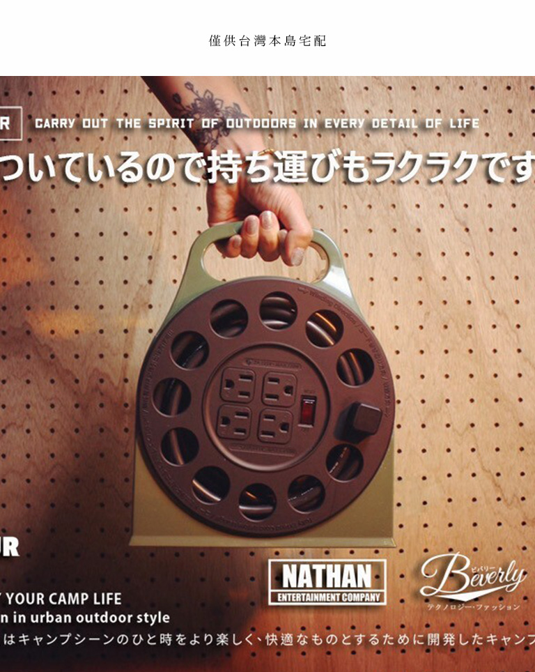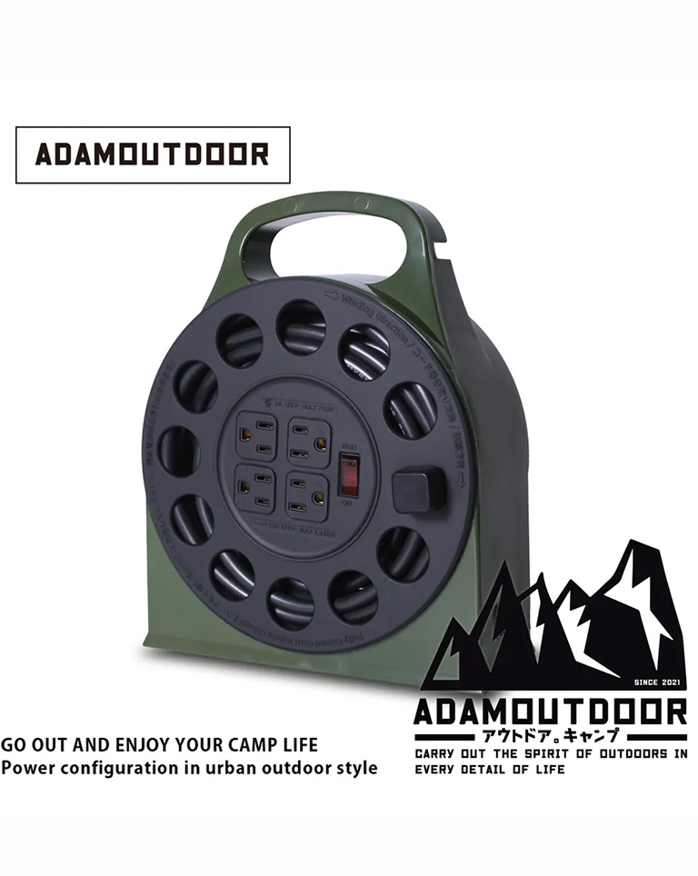 ADAM|4座3PIN輪座式延長線10.5M 軍綠