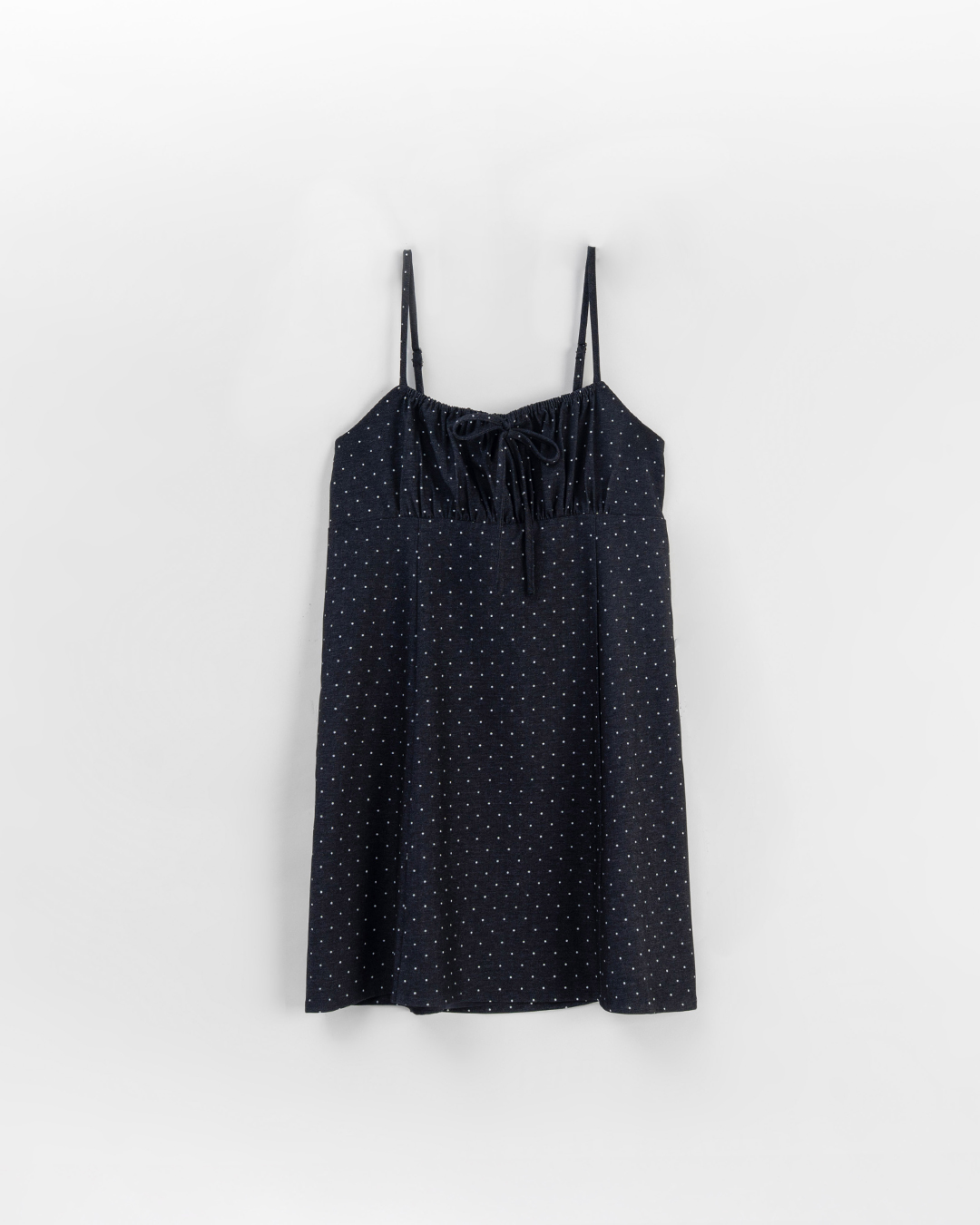 點點綁帶抓皺細肩短洋裝 S/M