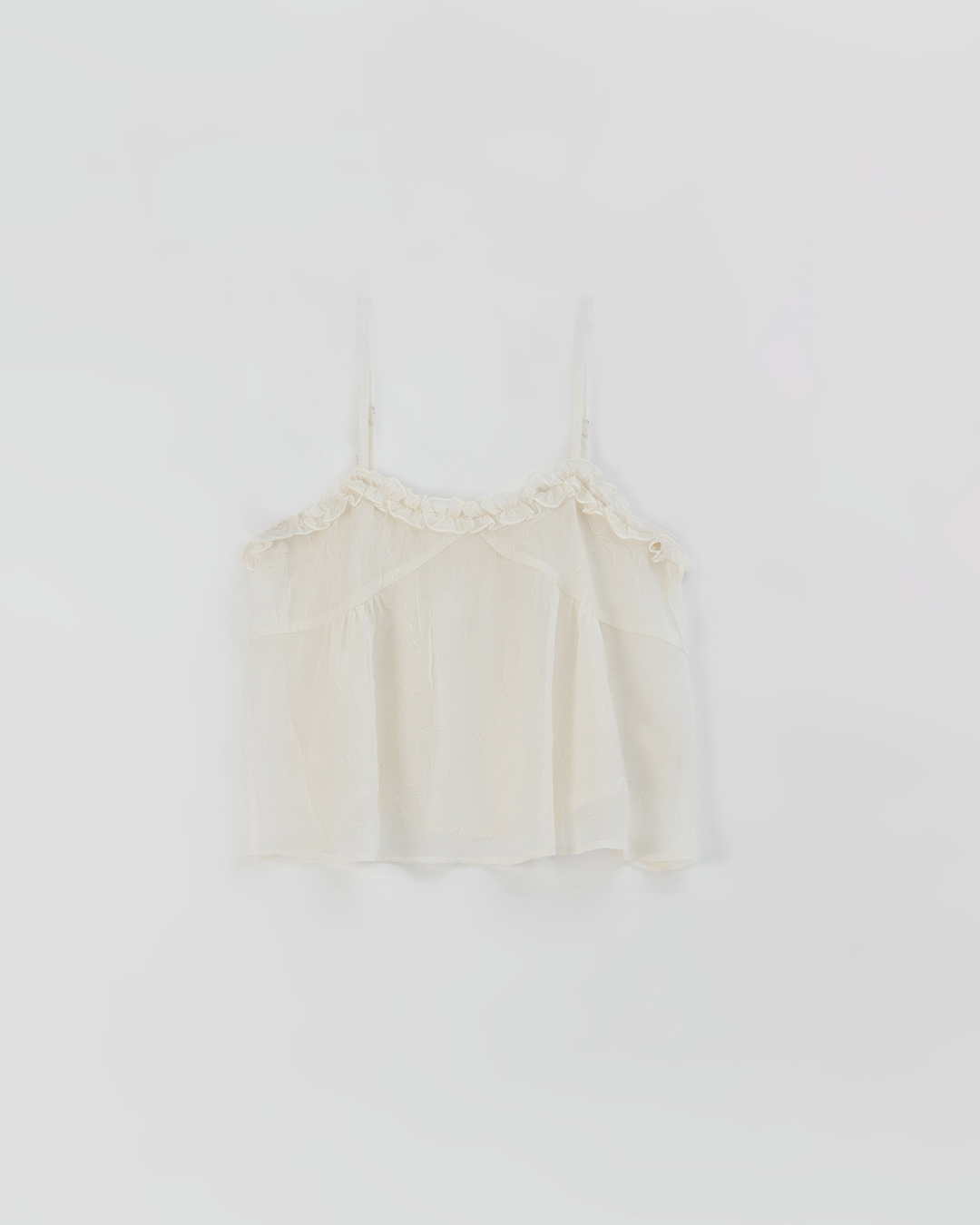 荷葉V領皺皺網紗設計細肩背心-白