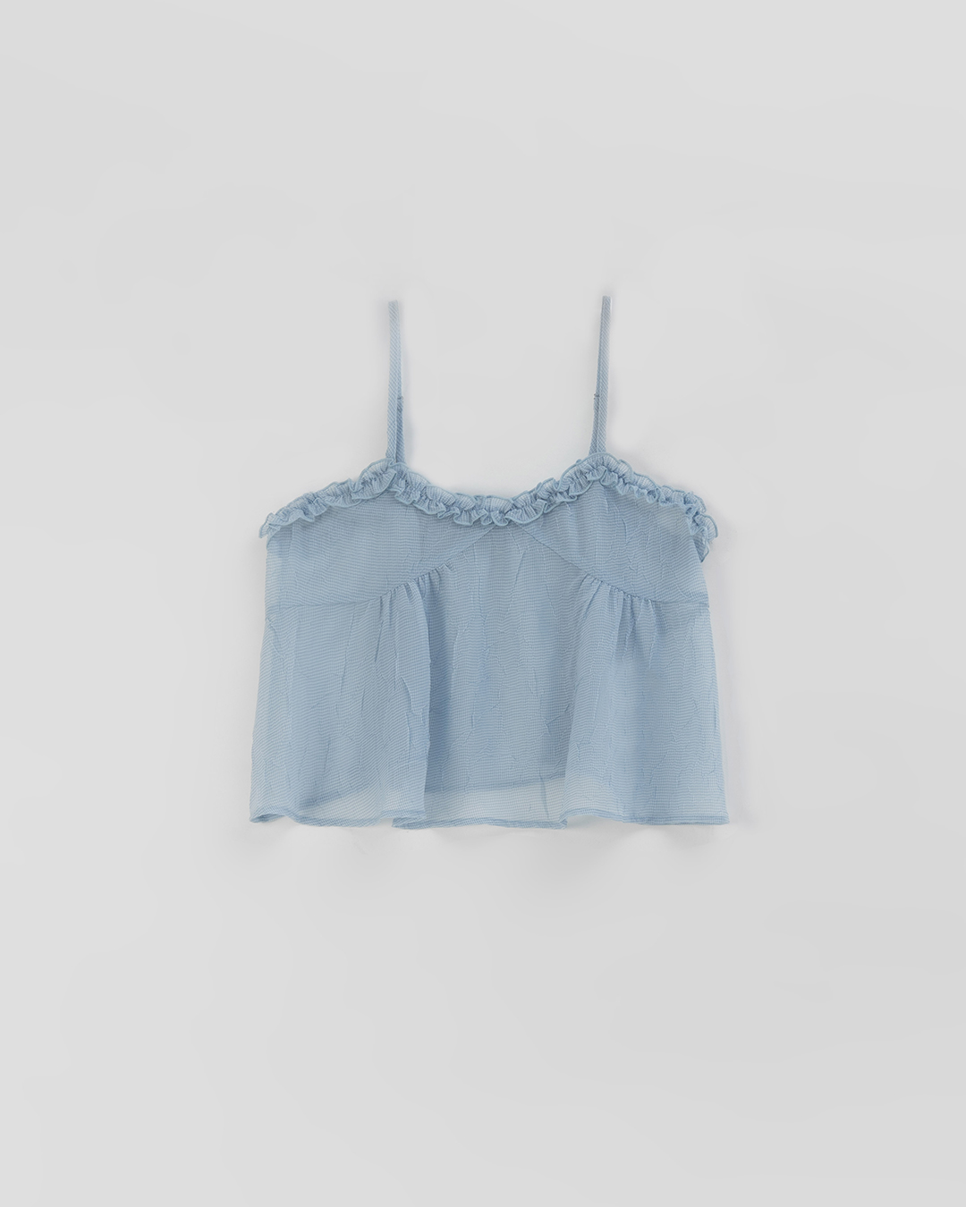 荷葉V領皺皺網紗設計細肩背心-藍