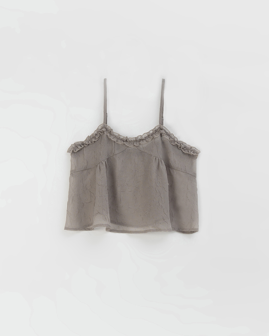 荷葉V領皺皺網紗設計細肩背心-咖啡
