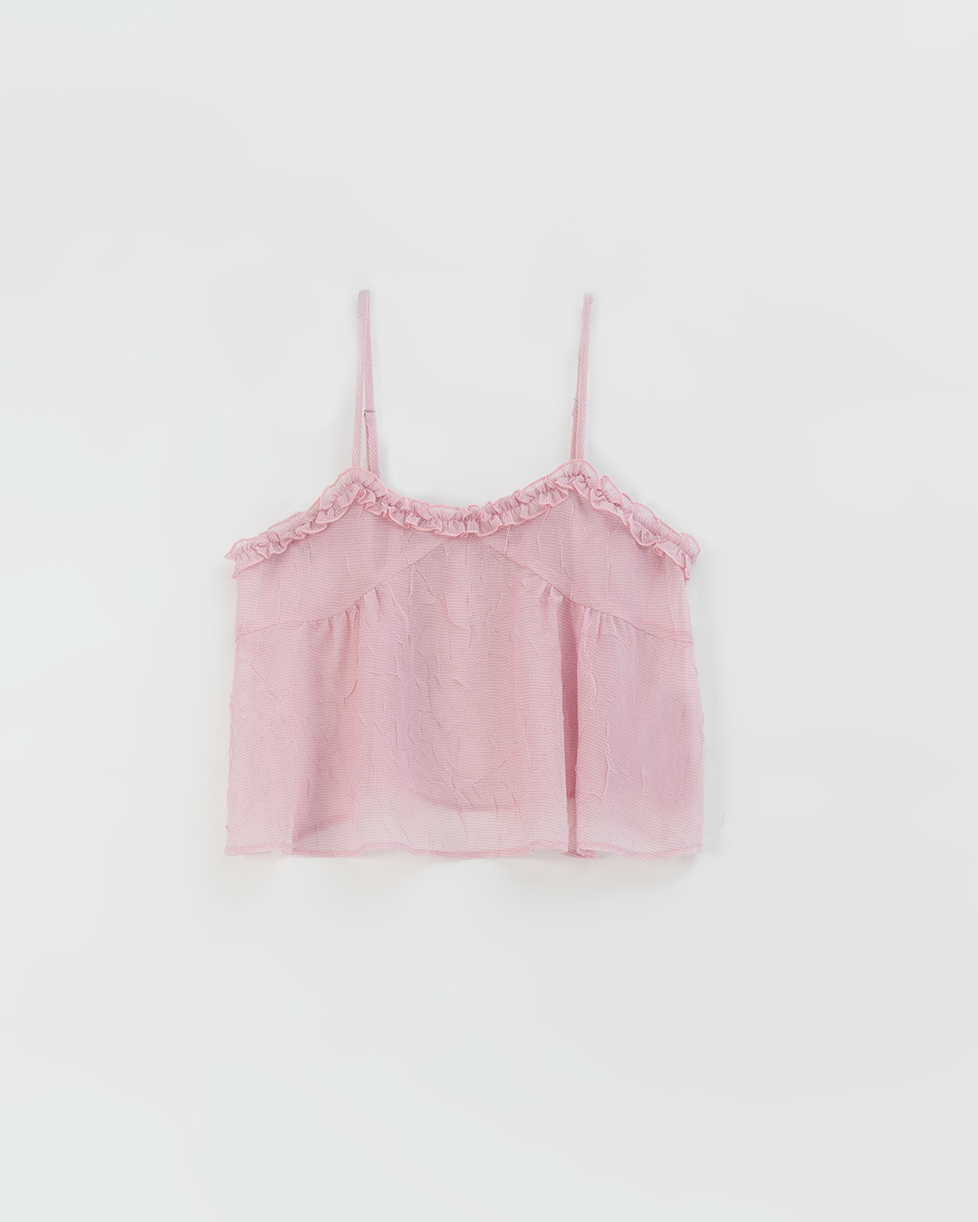荷葉V領皺皺網紗設計細肩背心-粉