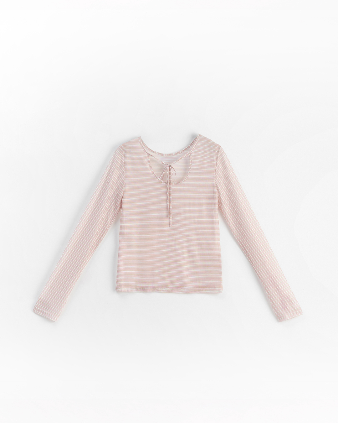 條紋抽皺綁帶造型短版襯衫 兩色售