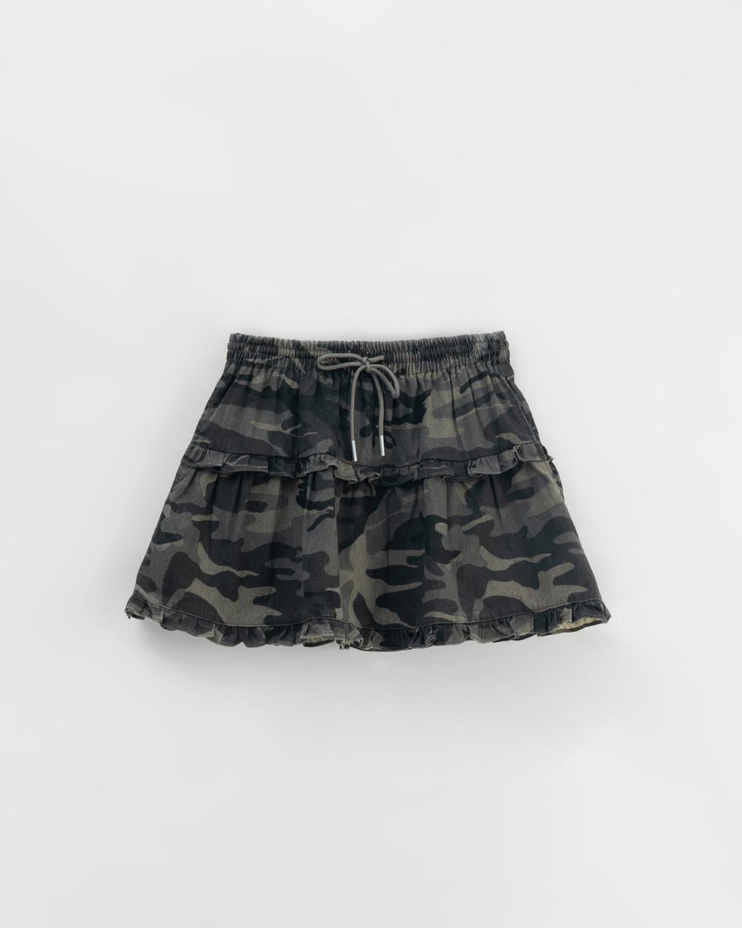 迷彩荷葉剪接蛋糕短裙 S/M