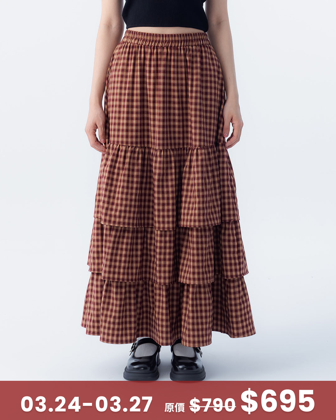 配色格紋設計荷葉蛋糕裙 兩色售