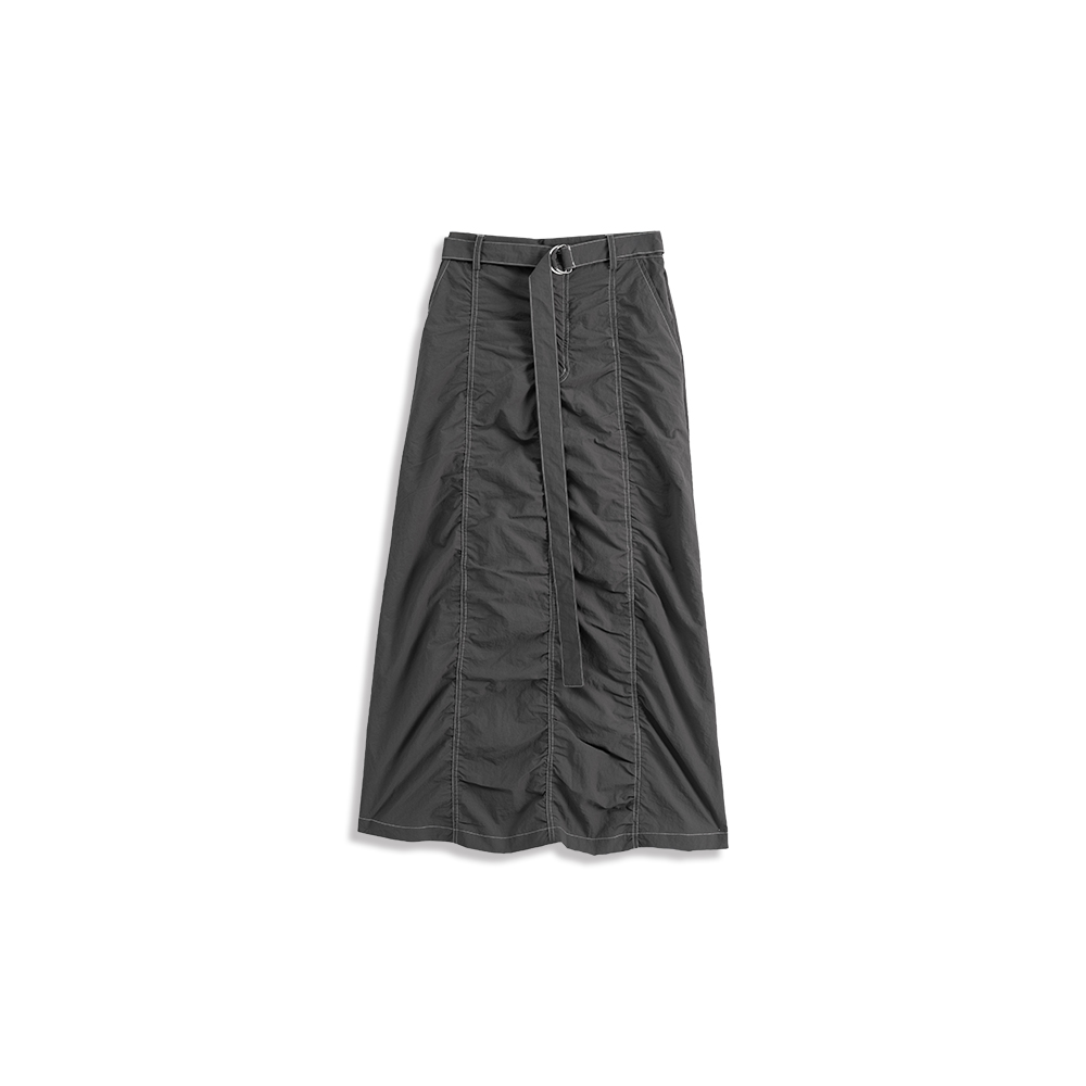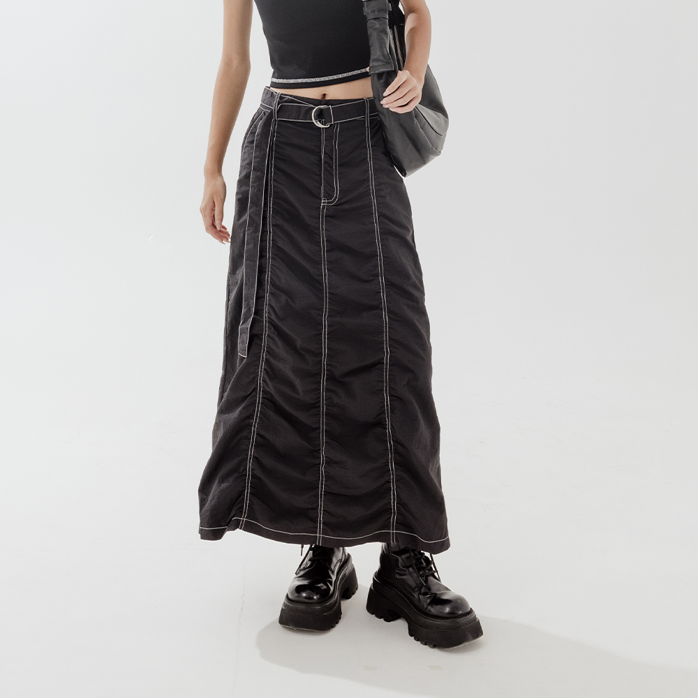 撞色壓線腰帶設計抓皺長裙 兩色售S/M
