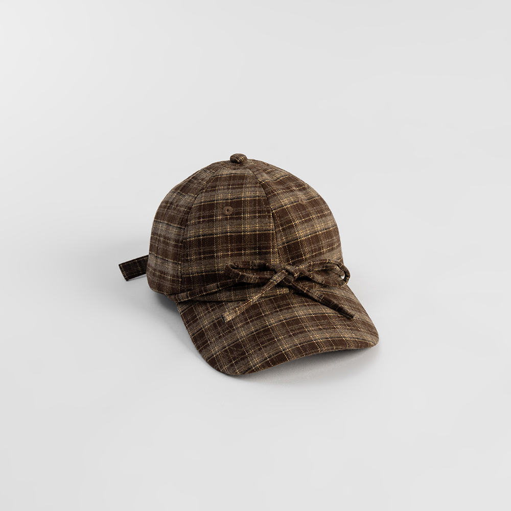 針織格紋蝴蝶結綁帶棒球帽 兩色售