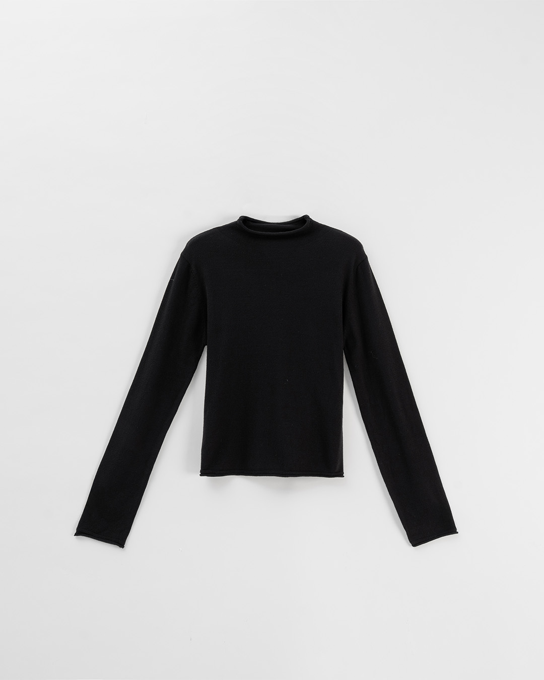 素面捲邊高領針織上衣-黑
