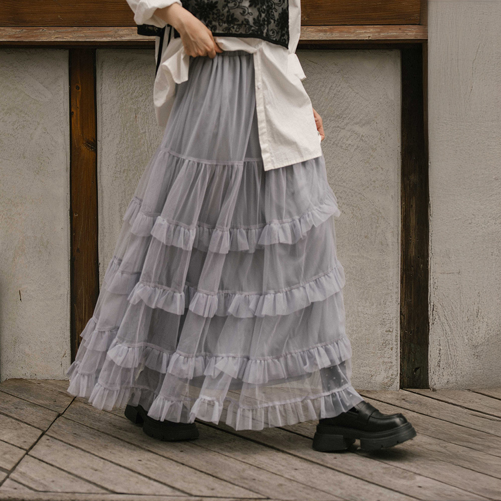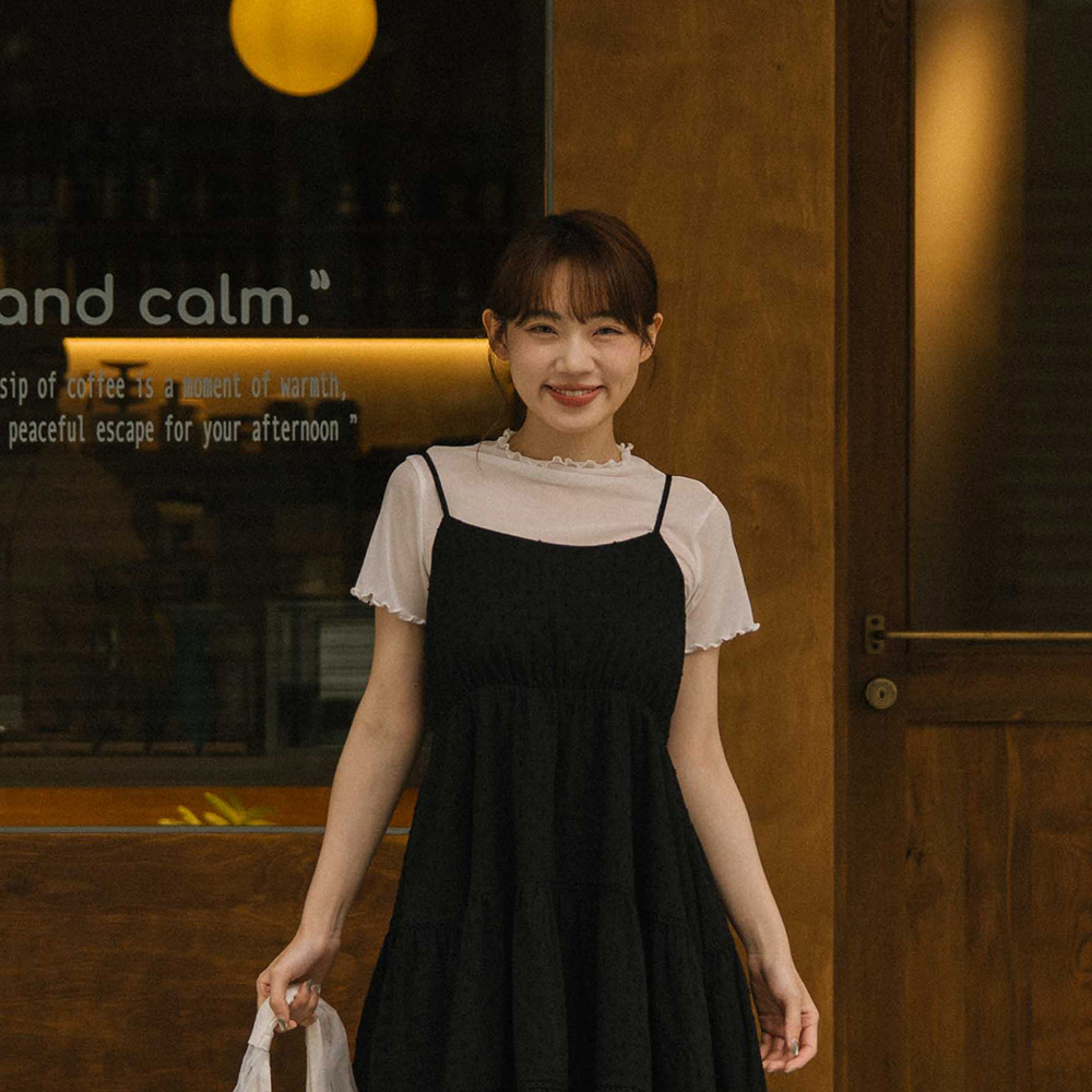 荷葉邊雙綁帶透膚細肩罩衫背心 四色售