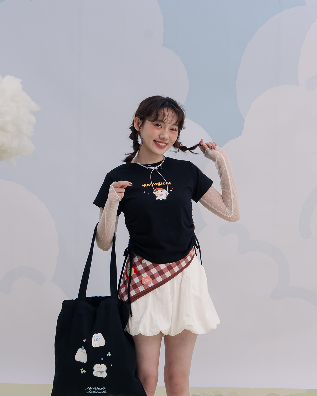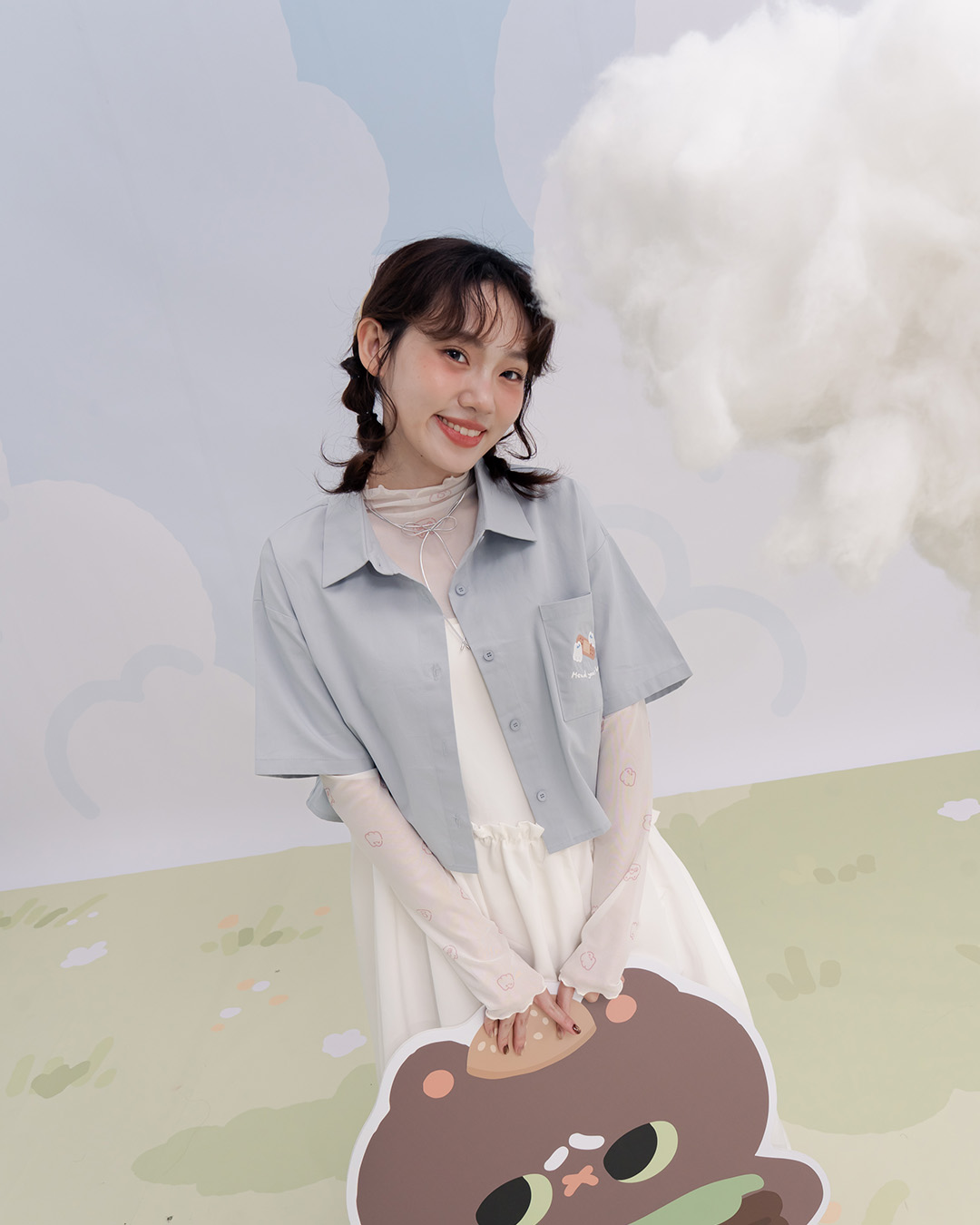阿說不想說 OK蹦幽靈貓短版襯衫 兩色售