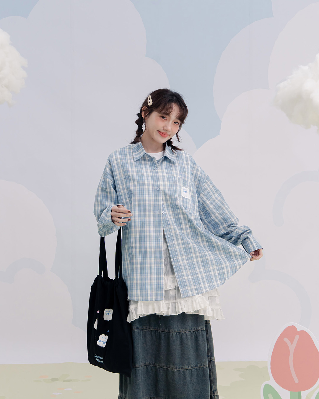 阿說不想說 SNUGGLE刺繡格紋長袖襯衫