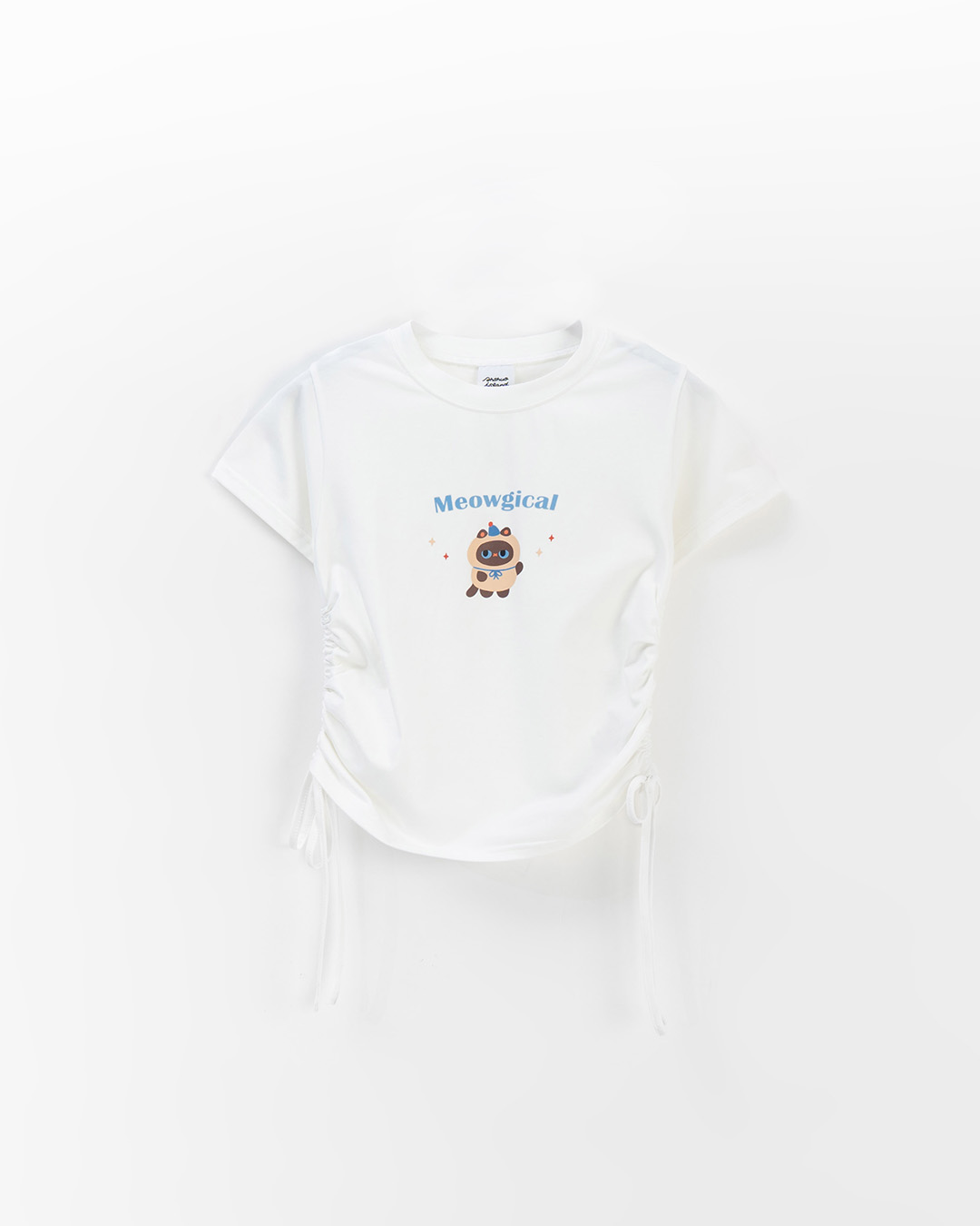 阿說不想說 英文印圖側抽繩合身上衣 兩色售