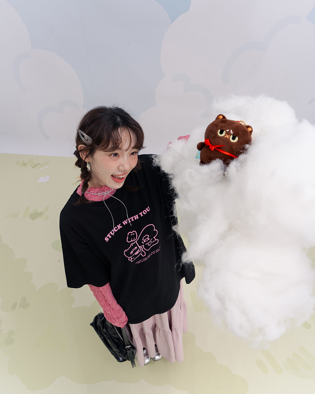 阿說不想說 捏糜&幽靈貓睡個好覺寬版上衣