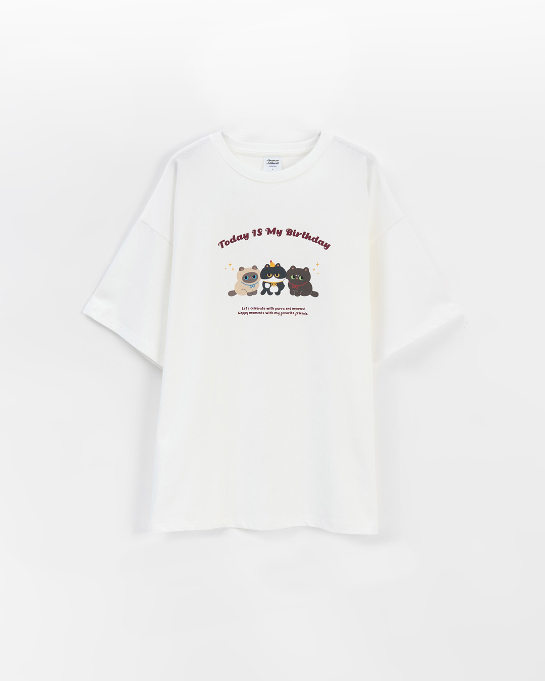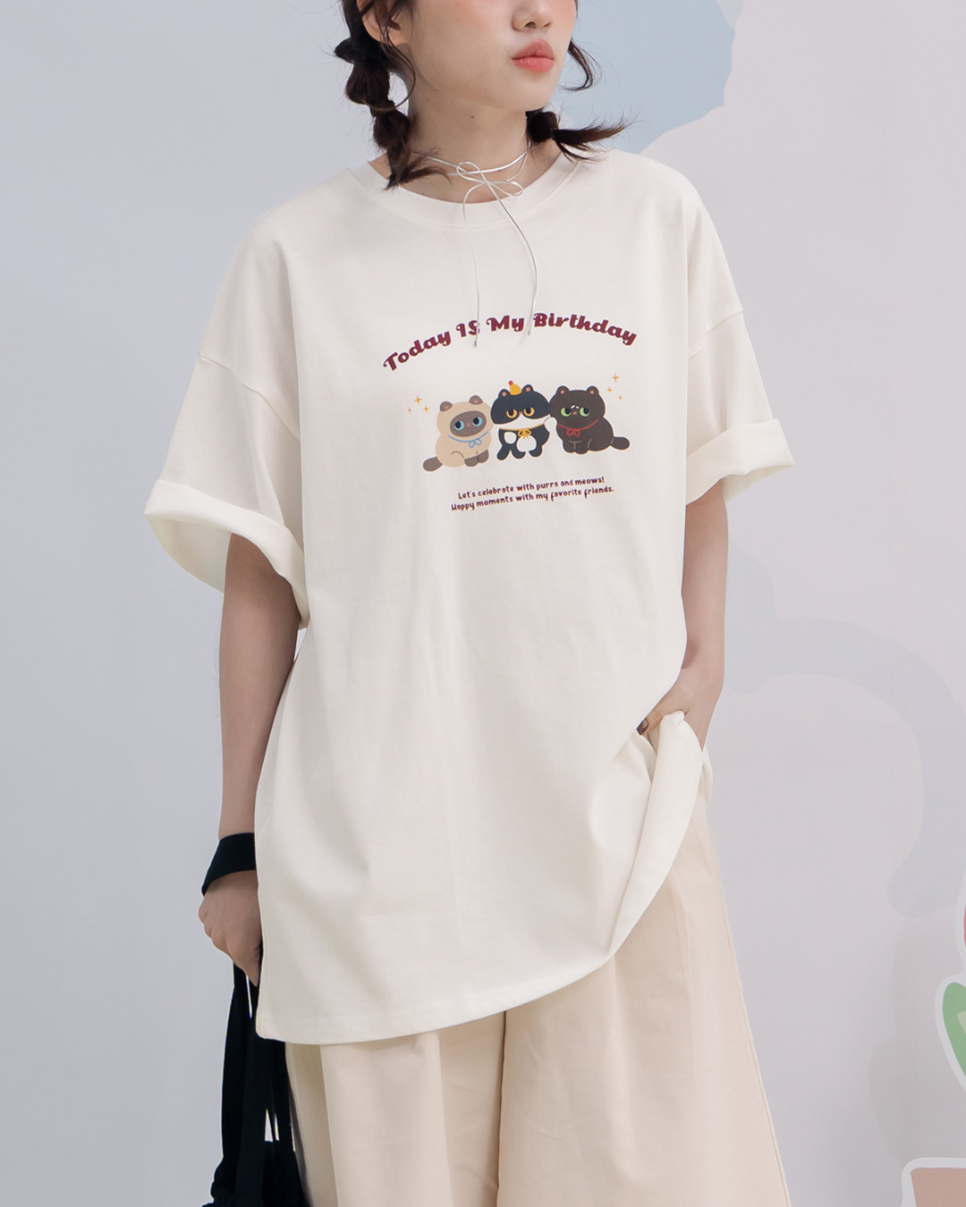 阿說不想說 三隻小貓生日祝福印圖寬版上衣