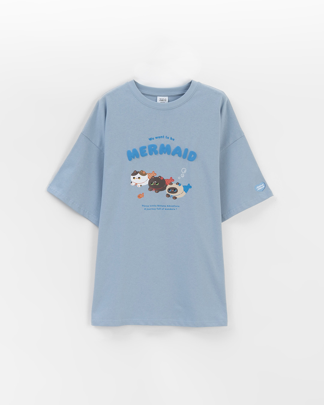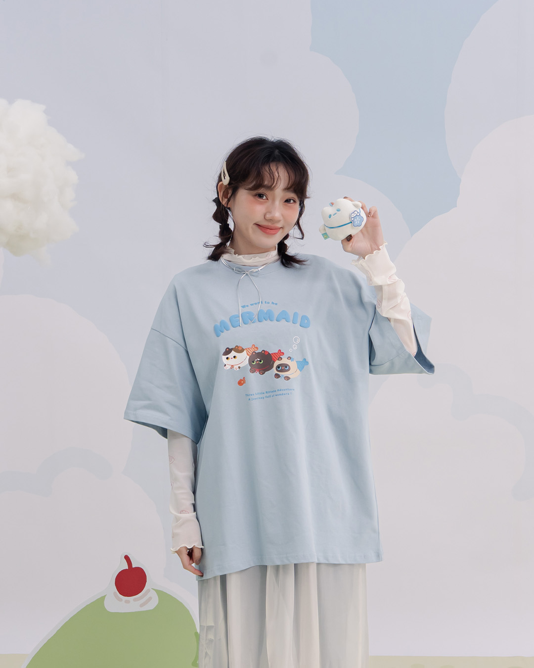 阿說不想說 立體泡泡字美人魚印圖短袖上衣