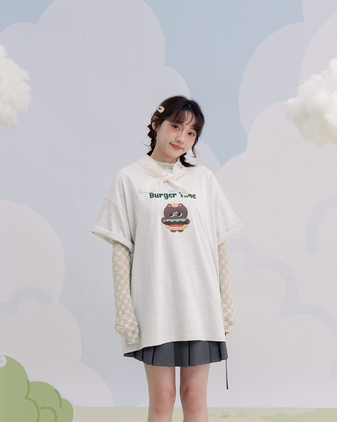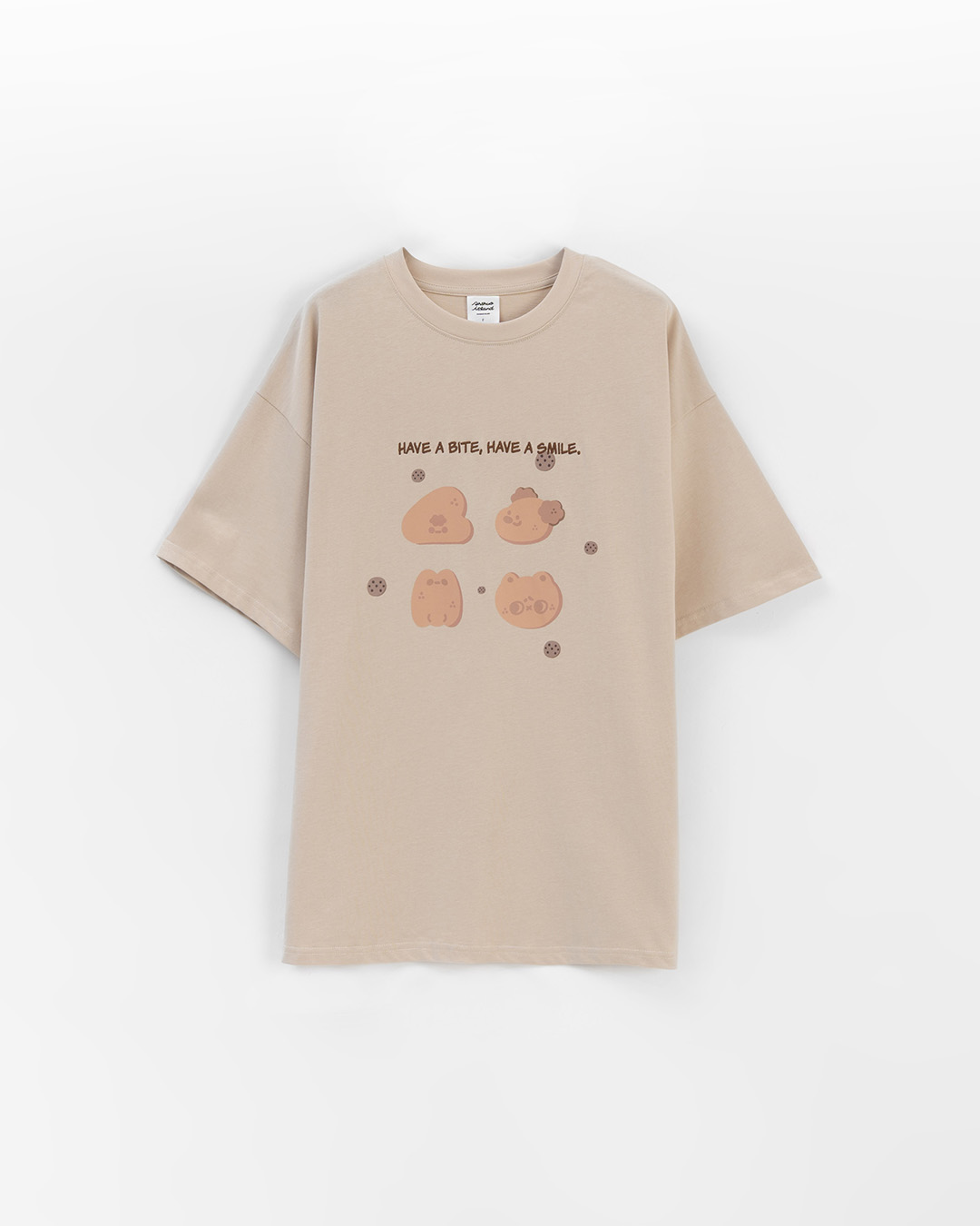阿說不想說 餅乾插畫印圖寬版短袖上衣