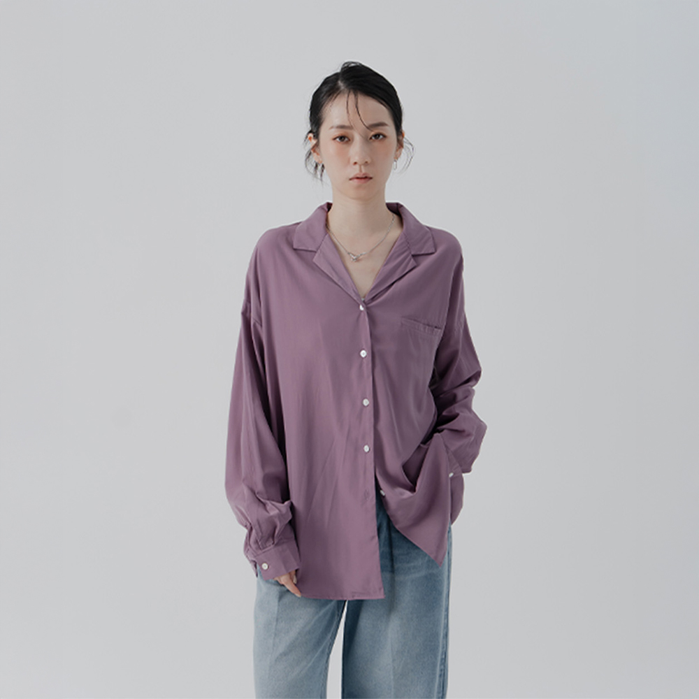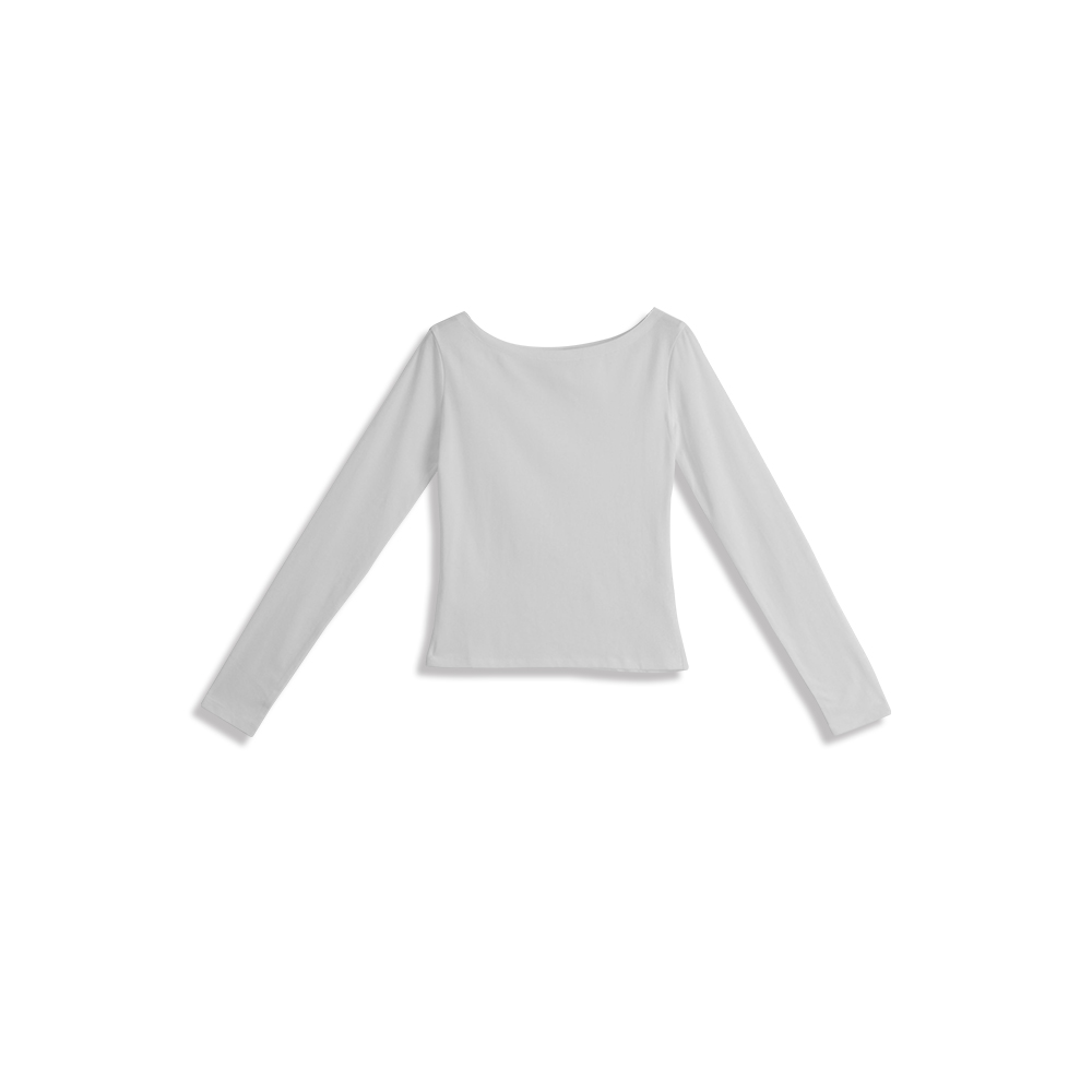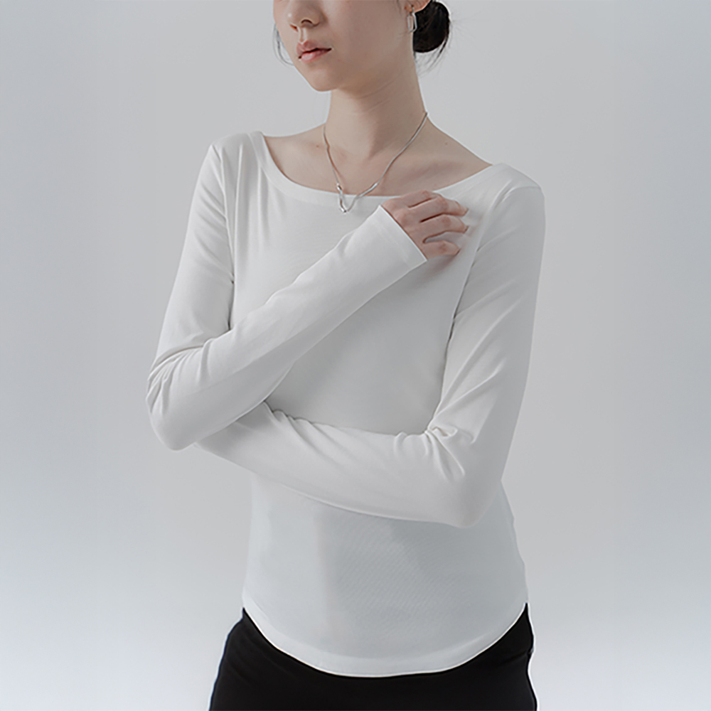 素色平領彈性設計長袖上衣-米白 S/M/L
