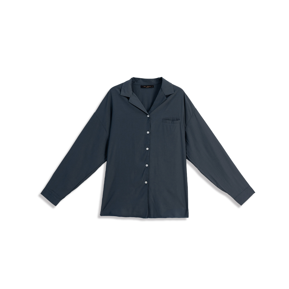 直織紋微透膚針織長袖上衣-藍S/M/L