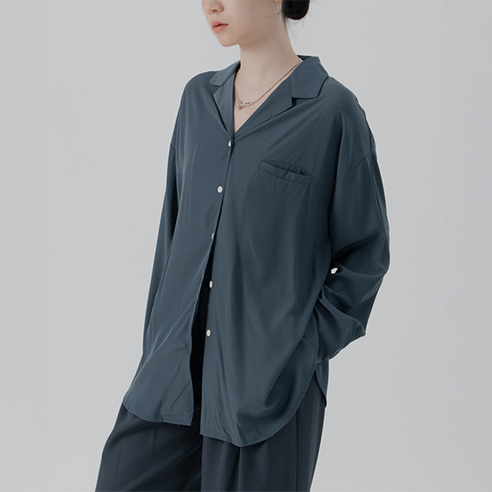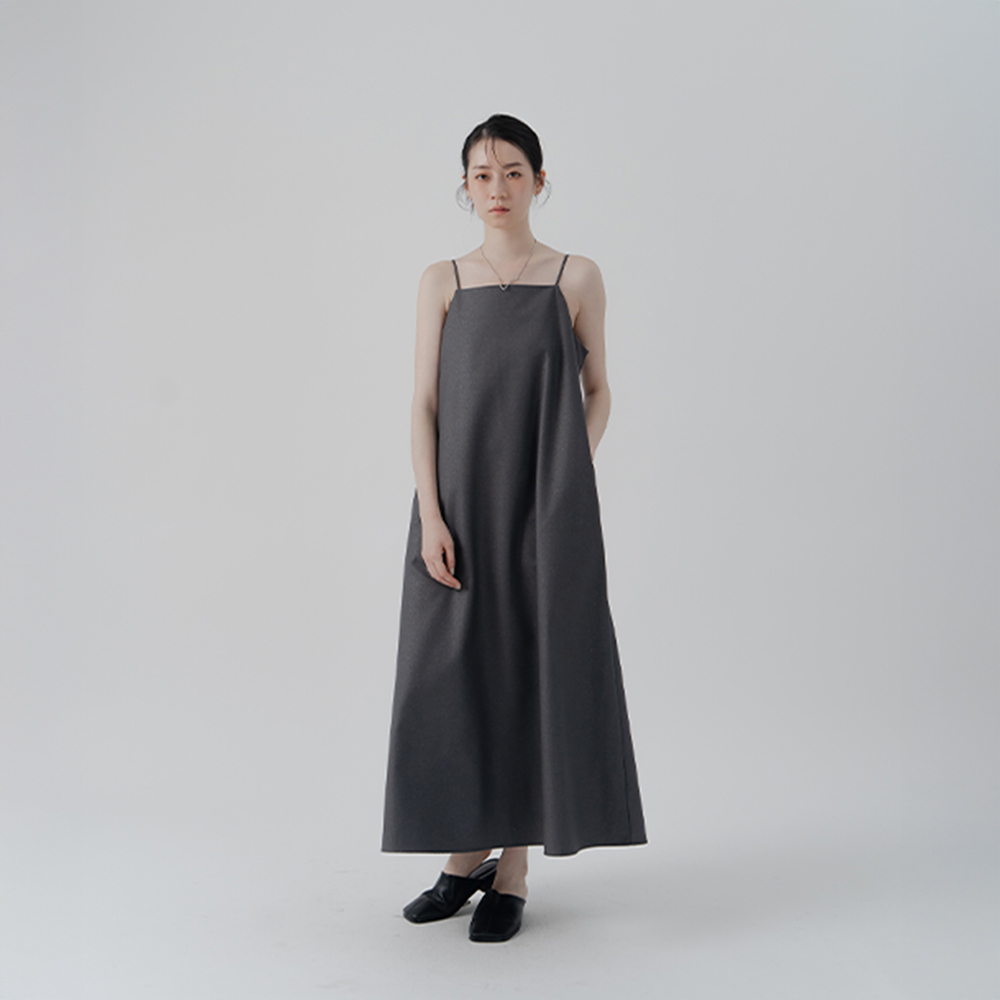 素面側綁帶開衩西裝長裙-深灰 S/M/L