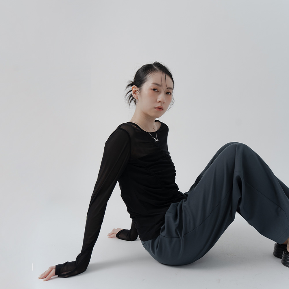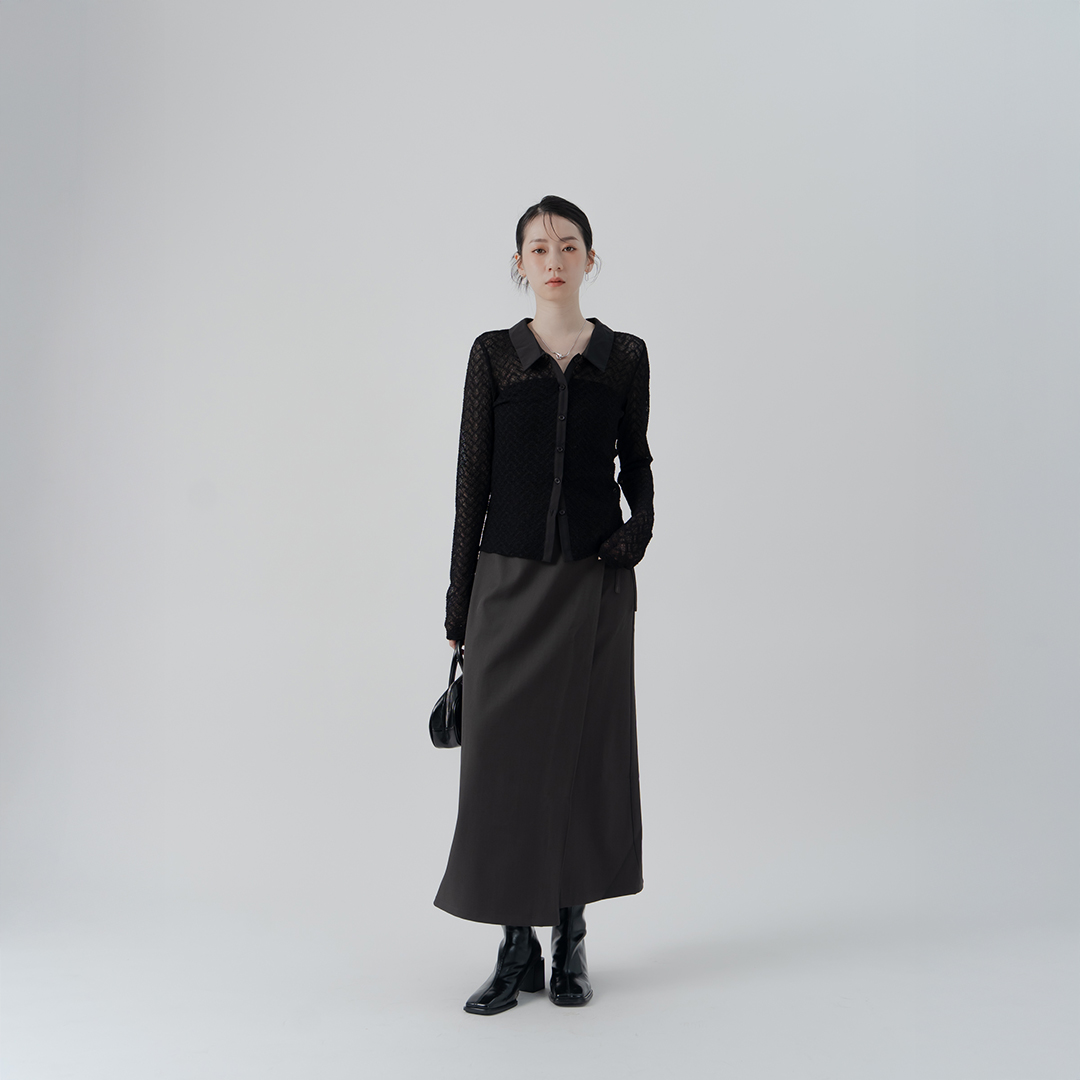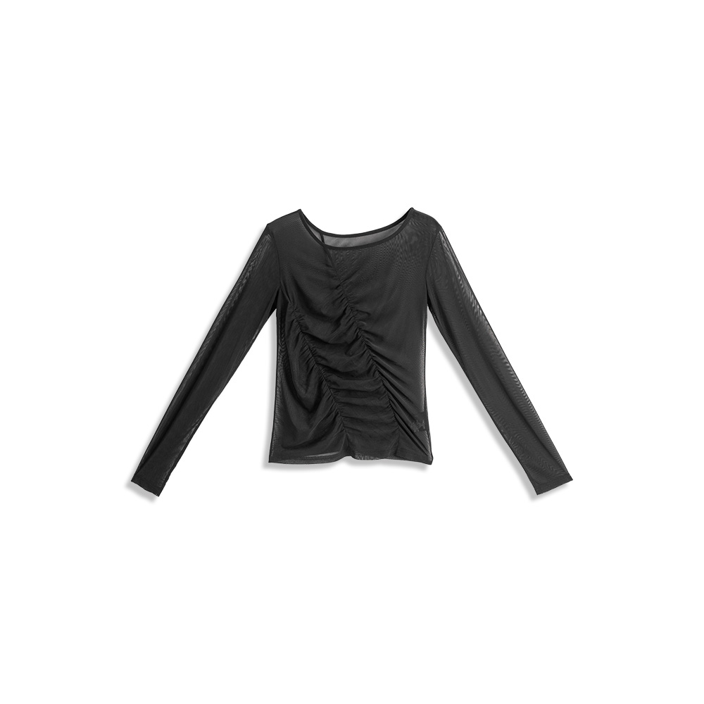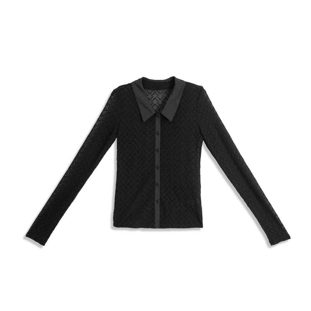 直織紋微透膚針織長袖上衣-黑S/M/L