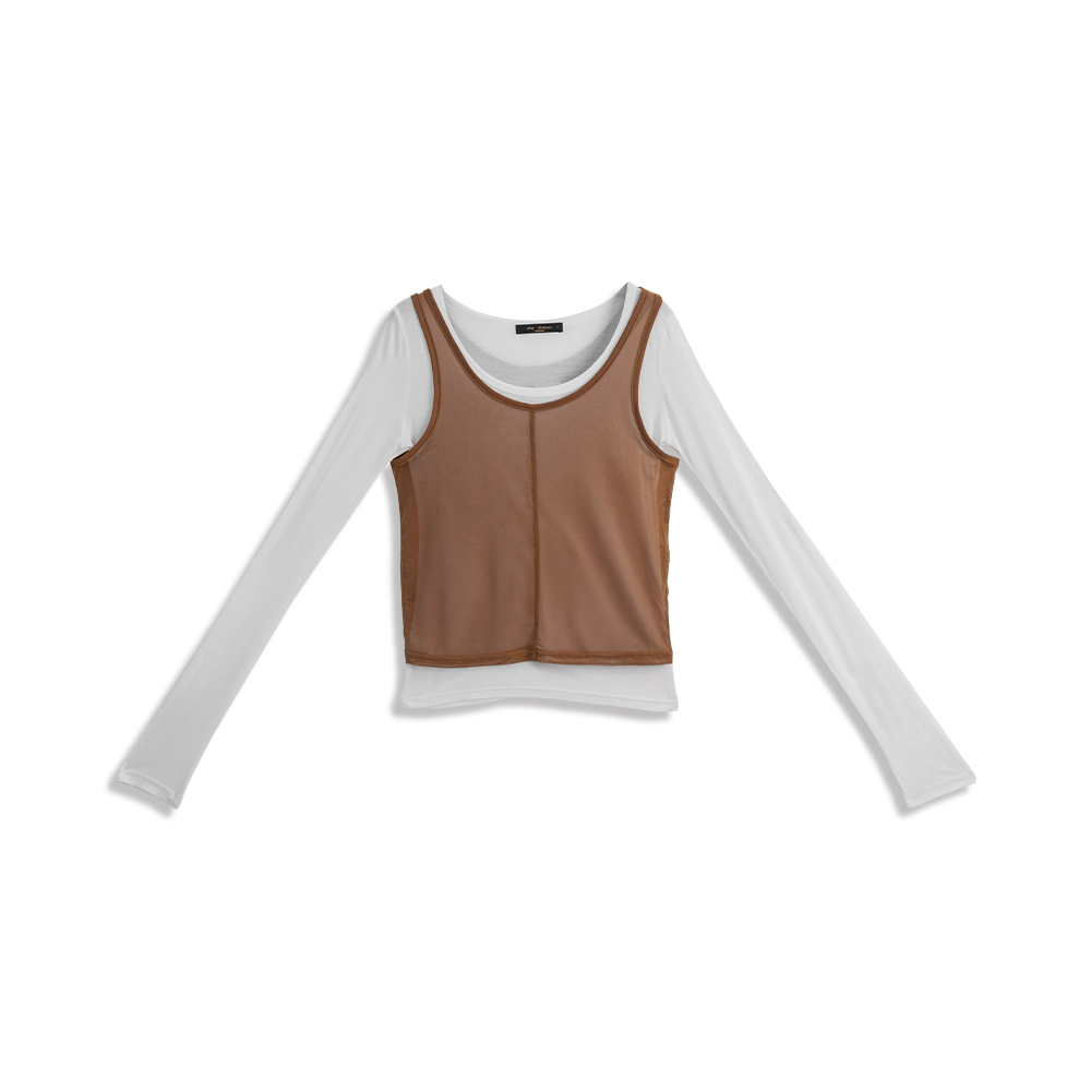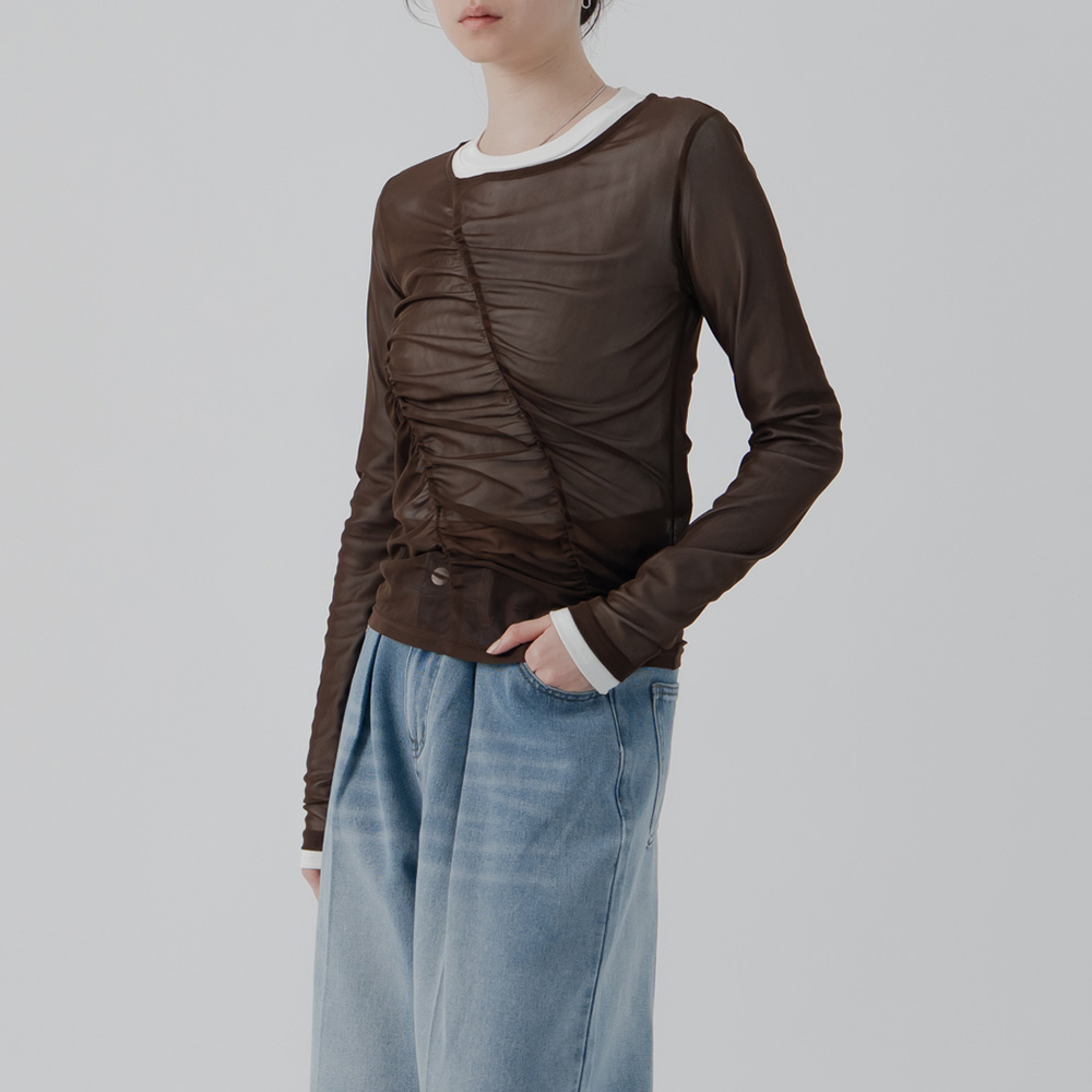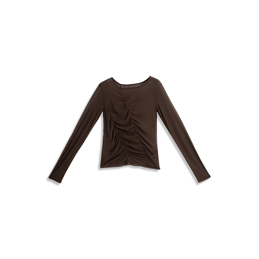 直織紋微透膚針織長袖上衣-灰S/M/L
