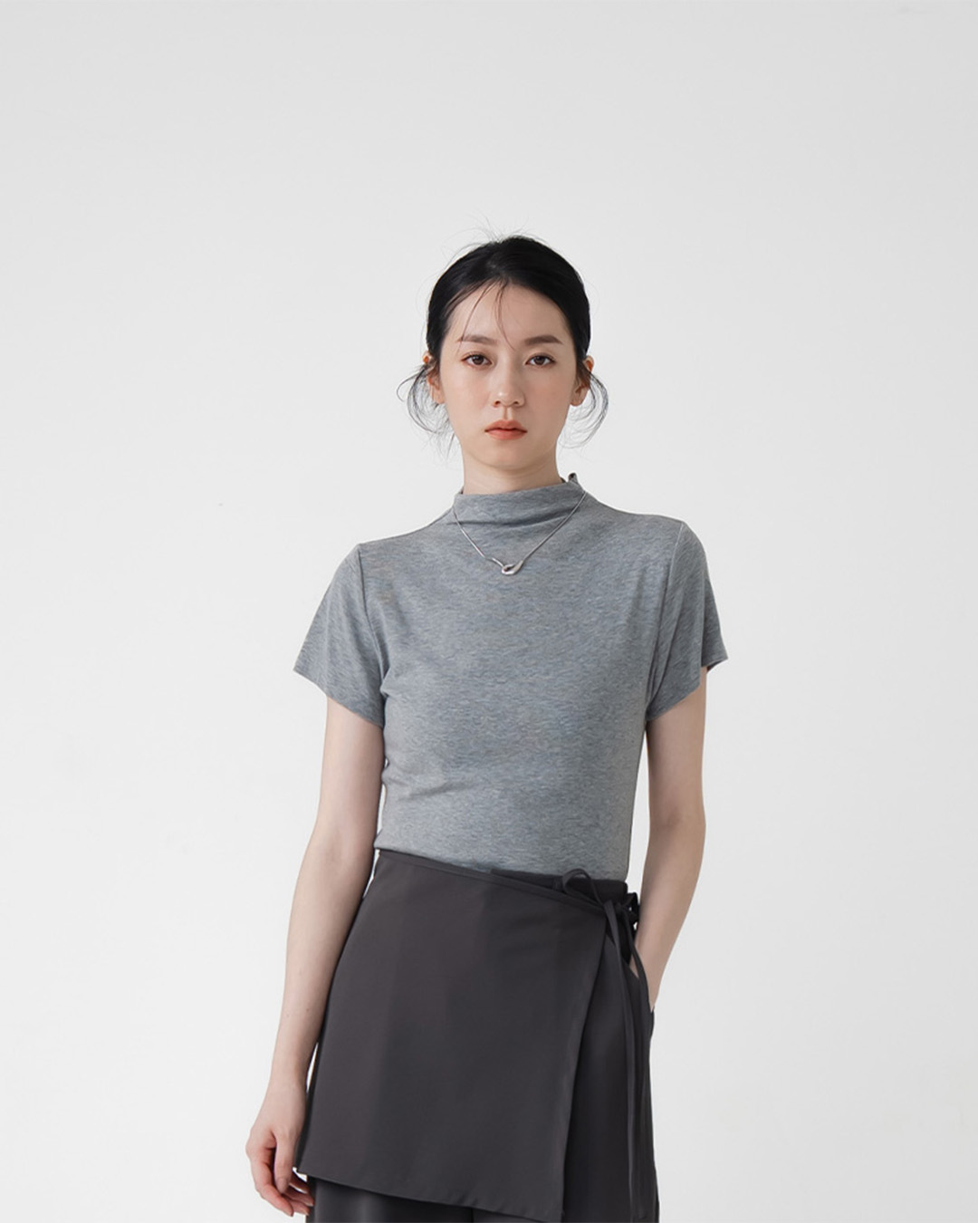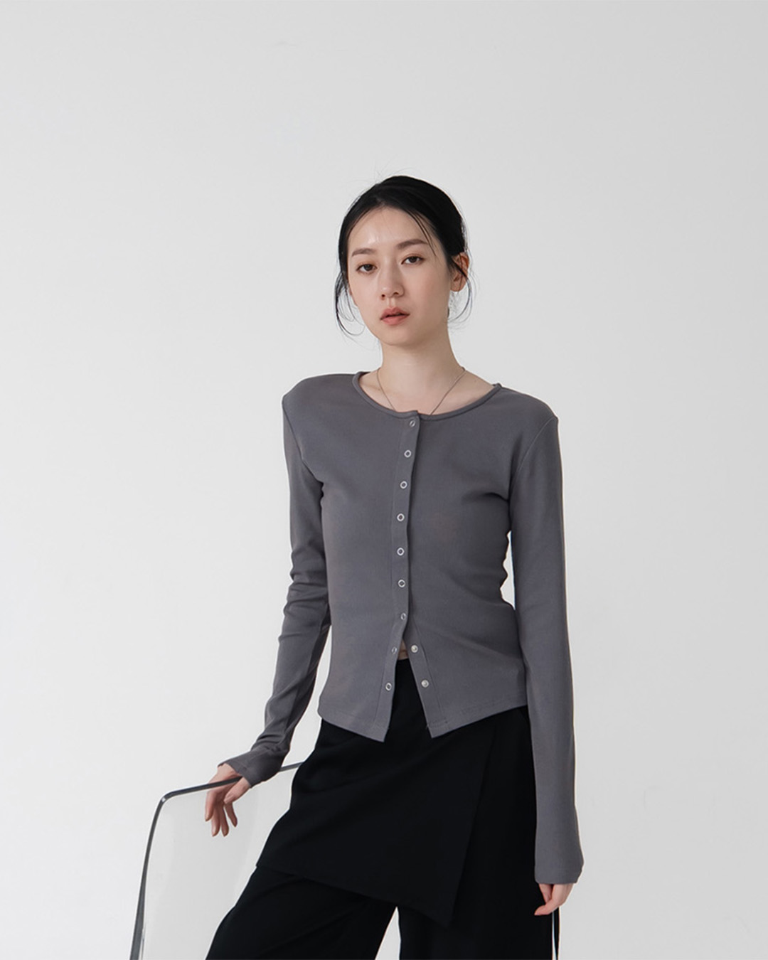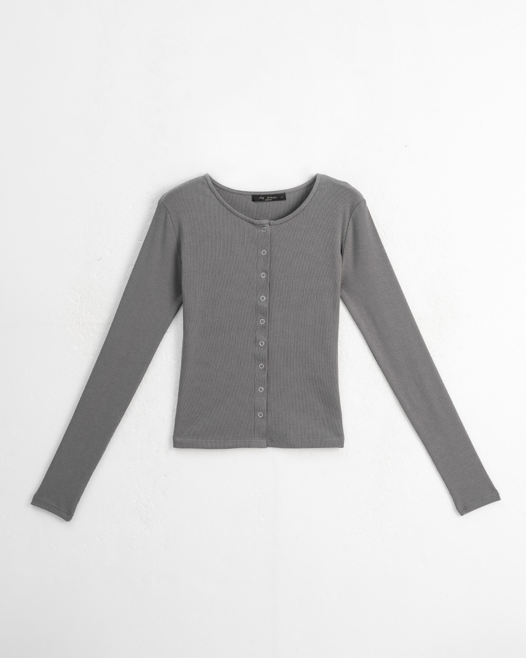 簡約圓領坑條排釦針織上衣-灰 S/M