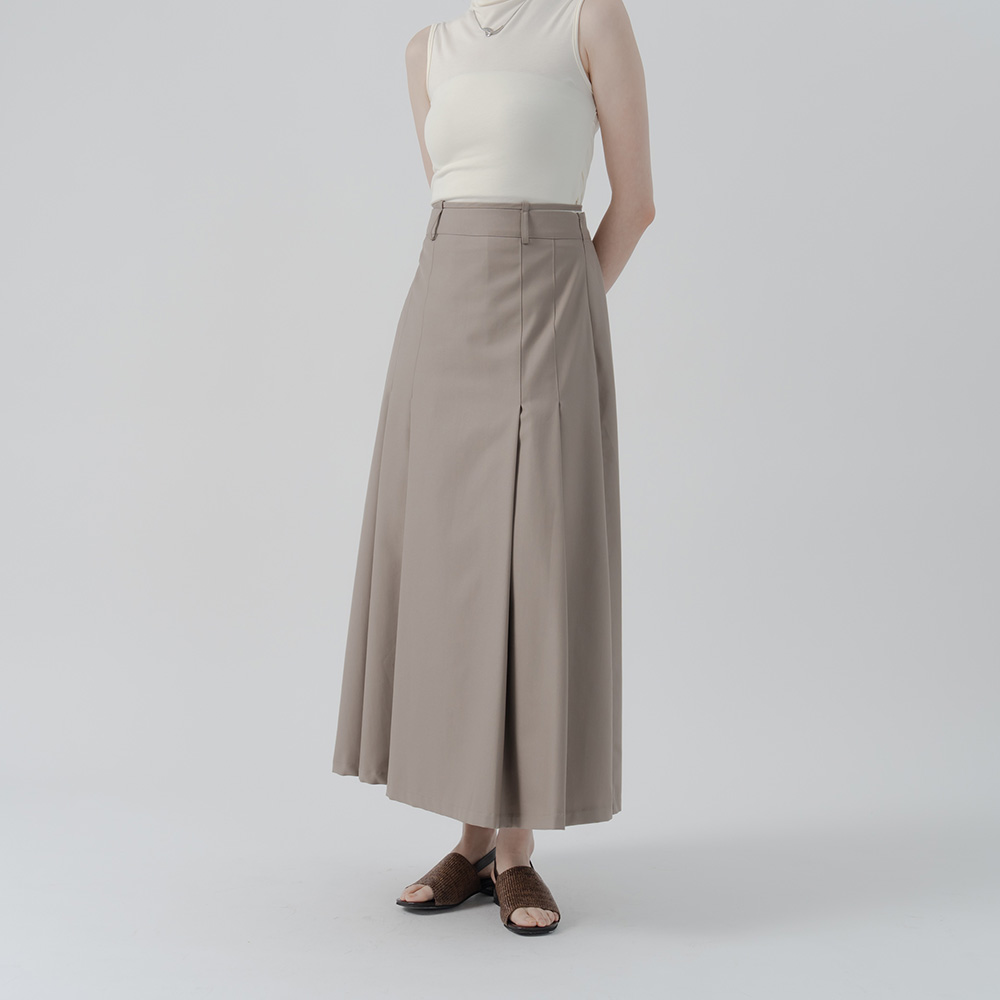 打褶剪接綁帶西裝長裙-卡其 S/M/L