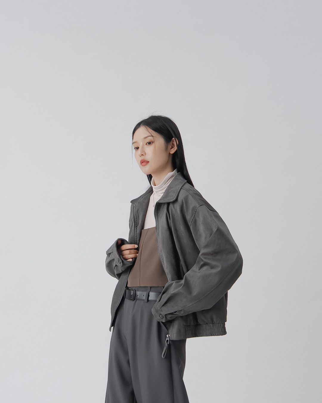 光澤感壓褶直筒天鵝絨長褲-灰 S/M