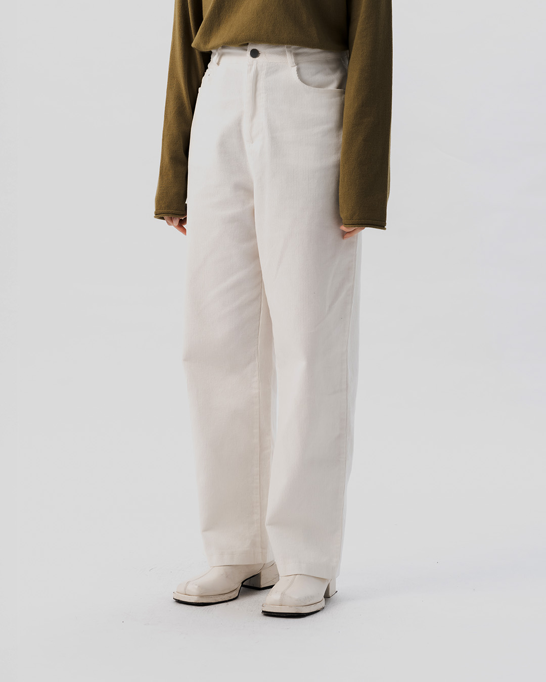 質感素面燈芯絨長褲-白 S/M/L